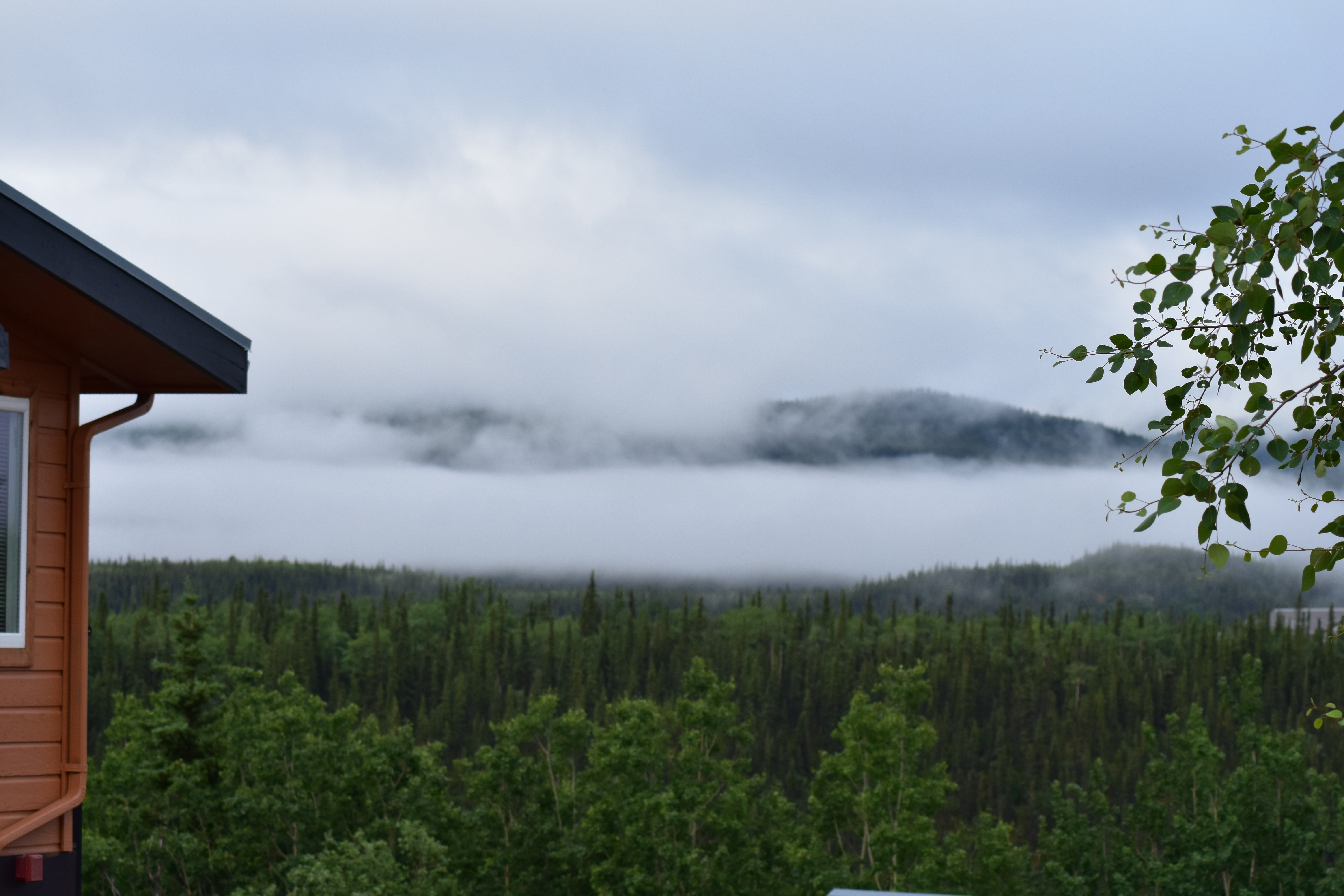 The morning was very foggy and we were worried we were going to be part of the 70% of people that do not get to see the peaks of Mt. Denali. As we were passing into the park we saw a snowshoe hare and shortly after the we found our first Moose. Our guide stopped once to show us the Ravens, Snowshoe hare, and ground squirrel and let us know we would see them a lot during out trip.