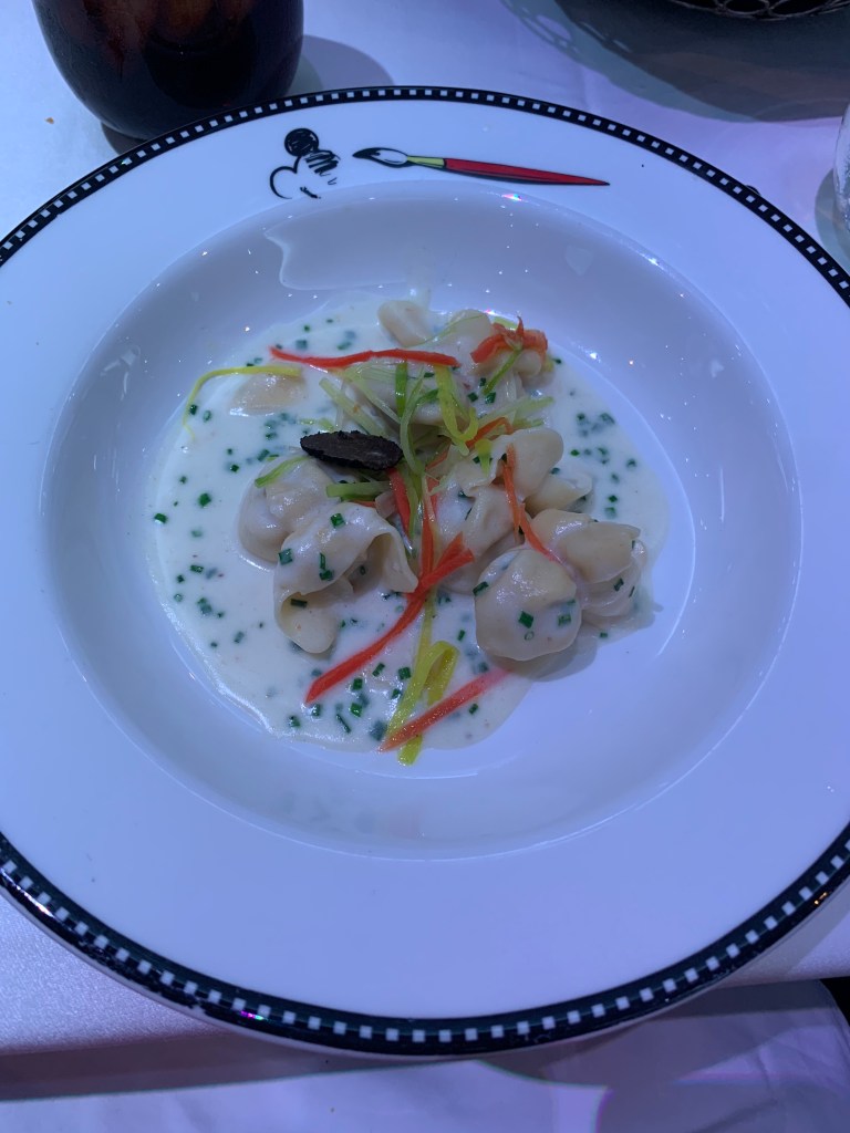 The first night for dinner I had the Black Truffle Pasta Purseittes (love) – pasta purses filled with Truffle-scented Cheese and coasted with a delicate Champagne Sauce