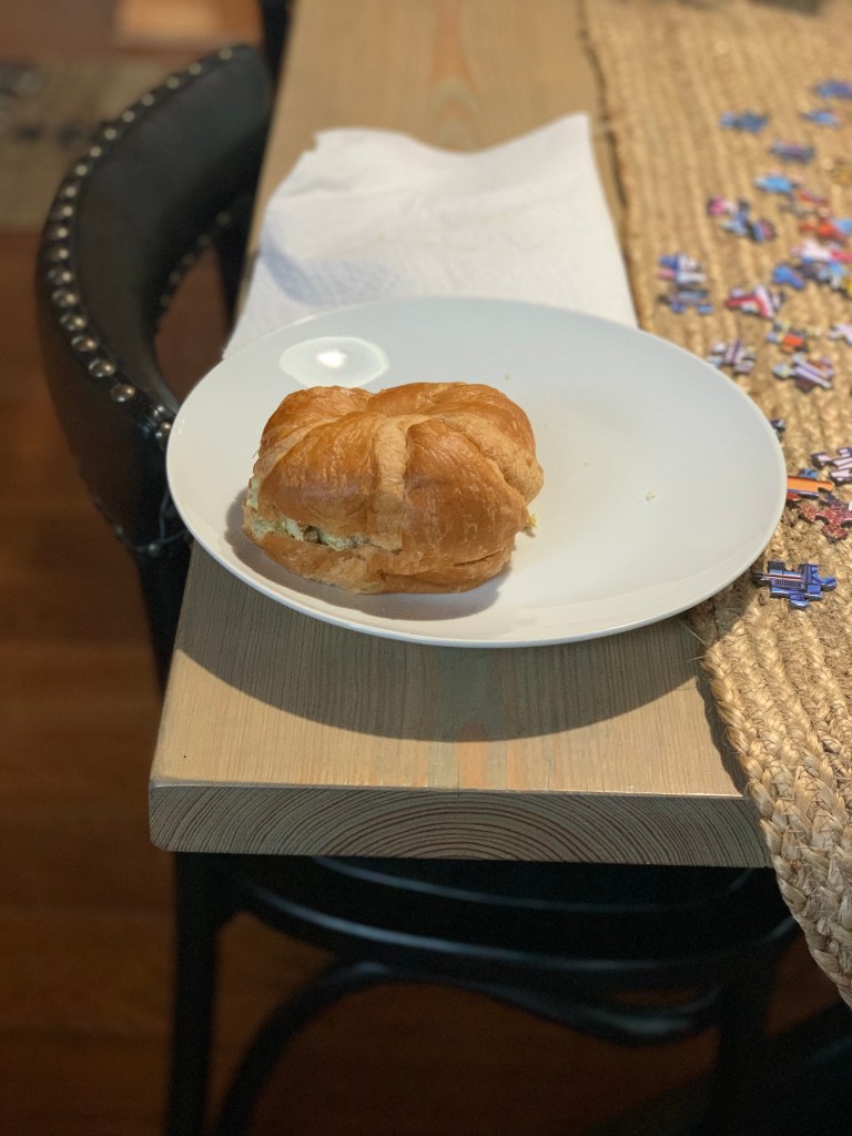 After some ice cream we headed back to the cabin to spend the evening relaxing. I read, watched TV, and worked on a puzzle. For dinner we had Pecan Chicken Salad that we had picked up at Mericer.