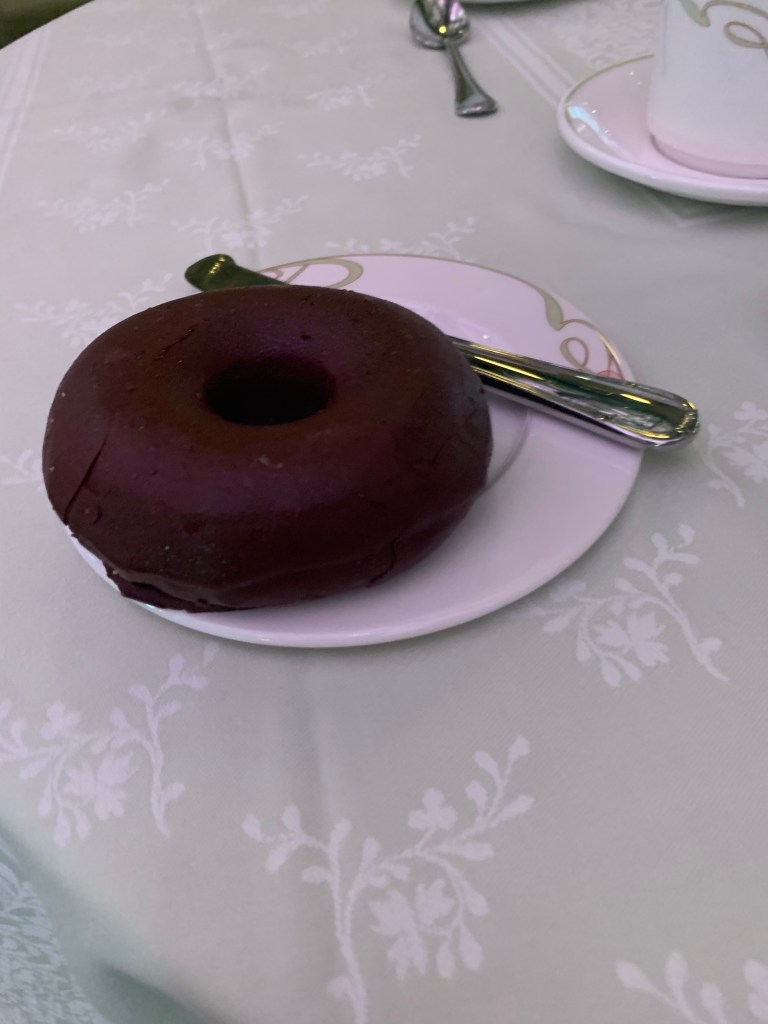 I decided to have a chocolate donut. It was a glazed donut that was dipped in chocolate!