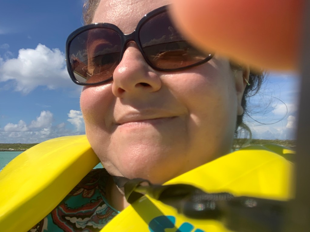 We found some seats in the shade and headed to the water. The water was nice and cool and very clear. We floated in the water for a while, then it was time to go for our Aqua trike adventure. The aqua trikes are these giant bikes that ride over the water. Short person problem I could not pedal and steer at the same time! We rode around for a while, I tried getting some pictures of the ship, but it was hard to see the camera it was so bright outside! We had a good time and got in a good leg workout.