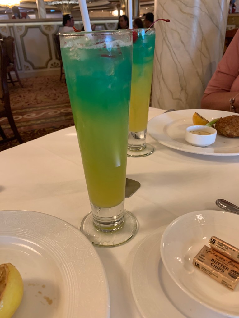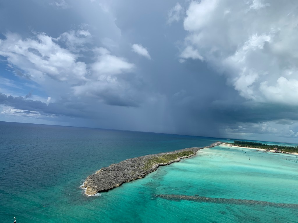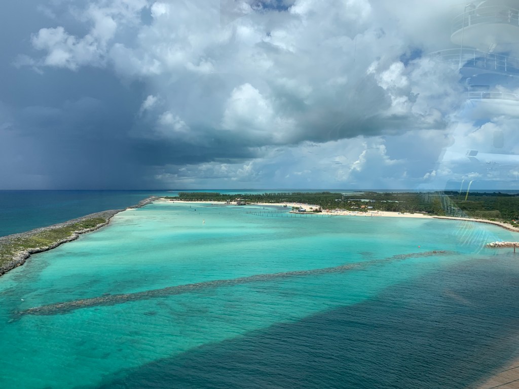 It was starting to look like rain was headed to the Island, so mom and I gathered our stuff and headed back to the ship. It did start to rain on us while walking back. We went up to the 13th floor to go Satellite Falls pool. We enjoyed the rain and pool for a little while. I really wanted some soft serve, so we headed to Eye Scream. Well my brain and my mouth are not staying connected so I ordered strawberry and vanilla ice cream! Then was confused when she gave it to me. I could have asked for a new one that was chocolate/vanilla swirl which is really what I wanted, but I decided just to eat the vanilla and throw away the strawberry.