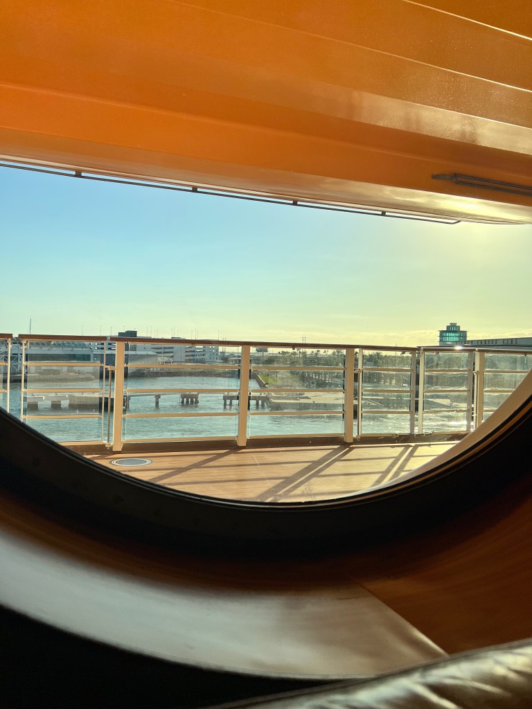 After lunch went to Forward Deck to the Walt Disney Theater to scan our code for the safety drill then up to the concierge location. I hope this is something that stays once restrictions are lifted. You look on your cruise app and are given the location of your drill station. Once at the station you open the app and scan the picture of the drill station. They confirm you room members are all present and you move on. The drill happens later. I am going to have another post just about the room and the lounge. There are so many things to share this was starting to get a little long!