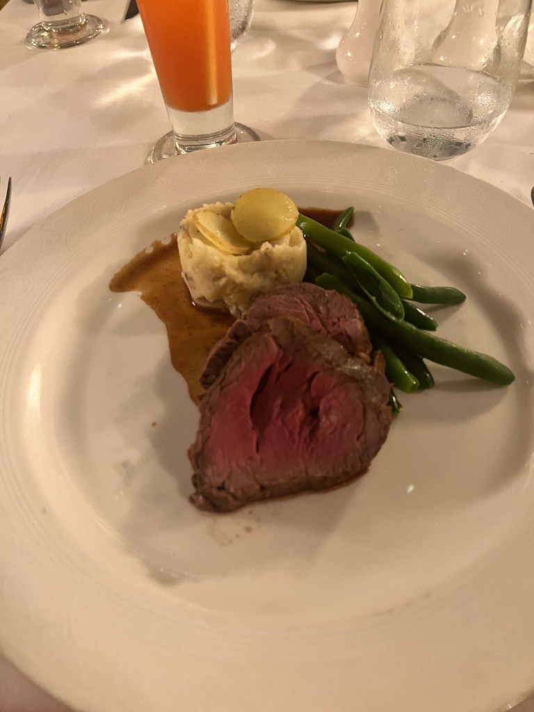 We went back to the room for a little while and then were going to come back down for the showing of Beauty and the Beast. We came down too late and there was limited seating. Right now they are skipping rows and leaving 3 seats between groups, so seating is very limited. The play was showing again on Sunday night, so we headed back to the room. Drink time was still happening in the concierge lounge, but we were so full. We checked out what was offered, so we could be prepared for Saturday night.