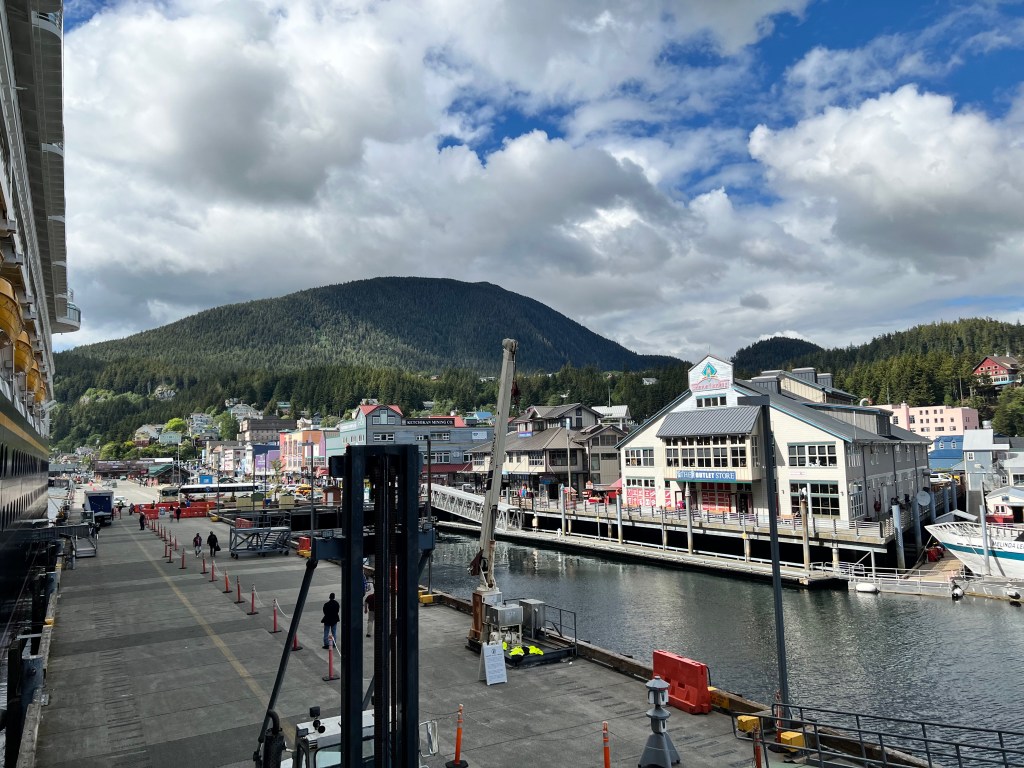 It was a nice day outside in the low 60s and the rain had cleared out, so it was perfect for walking around town. We were the only ship in town today so it was really nice walking around. Yesterday in Juneau there were 4 large ships in port, so the stores were super busy. Today were able to walk around and look at everything. I am surprised by how many jewelry stores are in the port of Alaska.