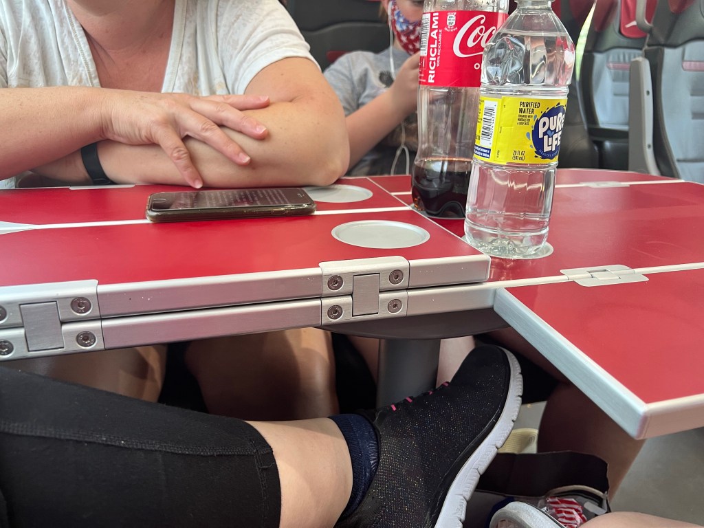 After that we stopped on another store that had a wide range of things from dishes to crafts to candy. We found a public toilet and paid our 1€ each to use the restroom before heading up to train platform to check on our train. It was a little late, but we found a place to sit before the platform was posted. Once on the platform it was clearly naked with the carriage numbers so we knew what train car to get into. We stored our bags as we got on board and found our seats. We went with the facing seats and table, so we could play games and eat out packed lunch. It was a little squishy with the leg room under the table. The traIn ride was about 2.5 hours. We played a few card games to kill some time during the ride.