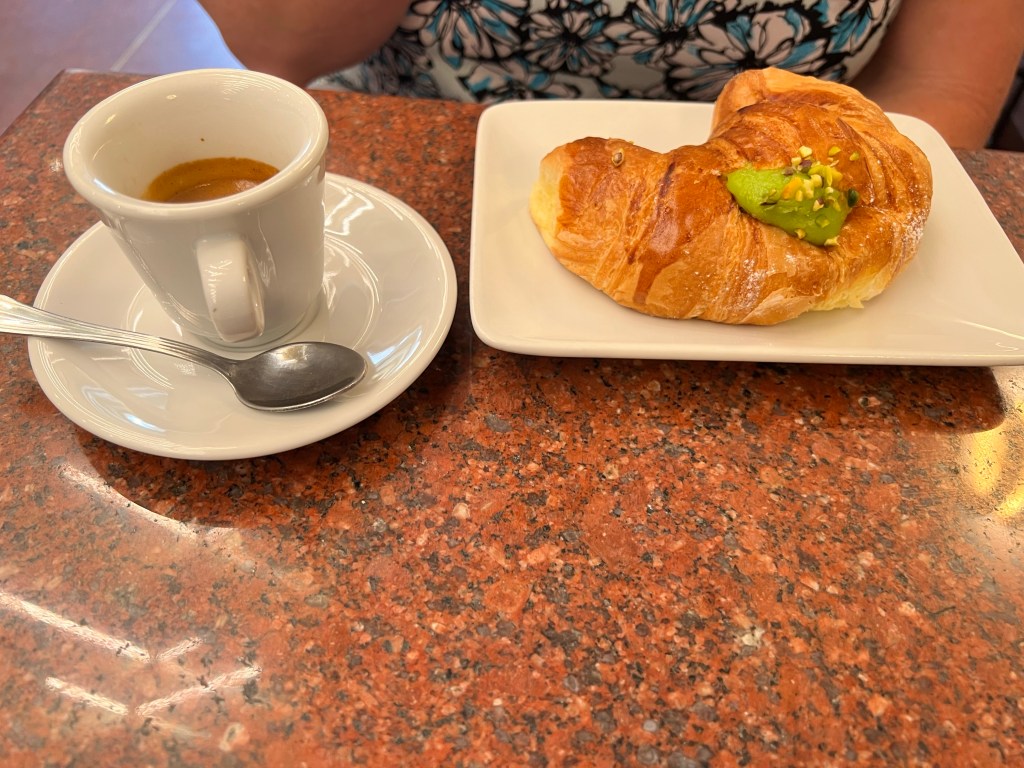 We stopped at Bar Olympia for pastries and espresso. It was a little pricey about 20€ for 4 Croissants and 2 espressos. That is what you get in touristy areas.