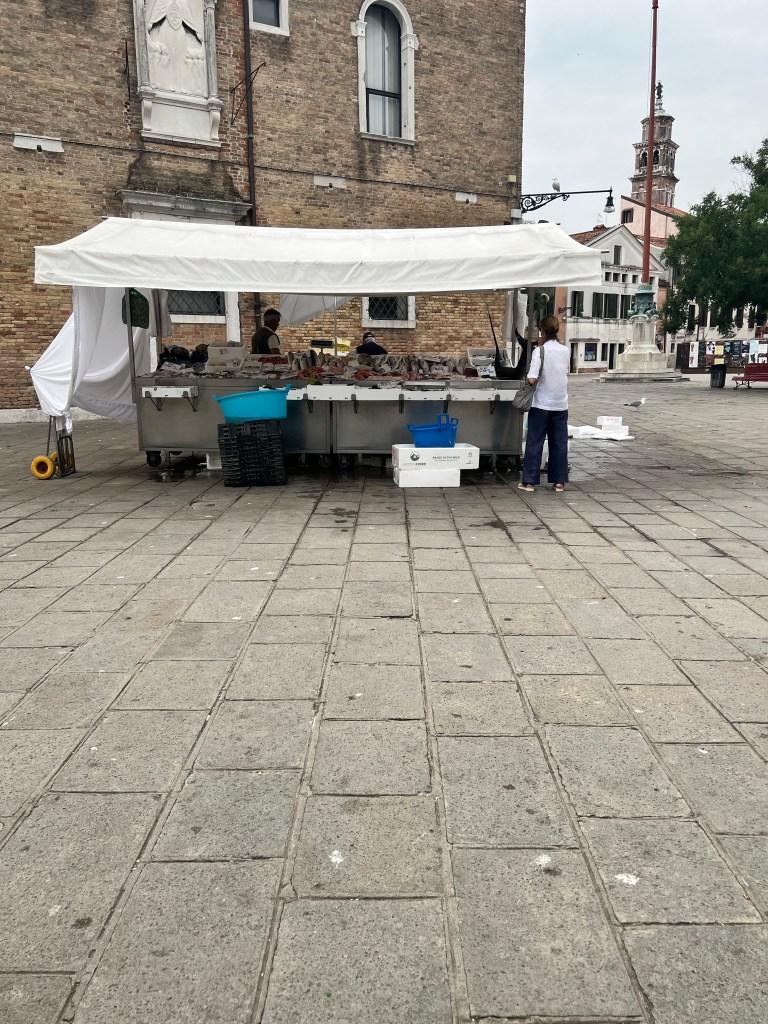 After dropping there we started our exploring again. We saw a fish stand and then a boat selling fruits and vegetables.