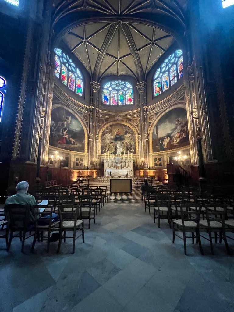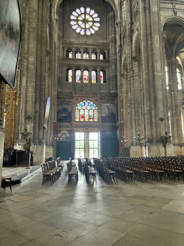 We decided to check out the church near our place Eglise St. Eustache since it was rainy this morning and we needed to find things to do inside. The church was having some restoration done and was a little dark inside. The ceiling was really high. We were able to walk around more since there were no services today. It was also free to go inside which was a plus.