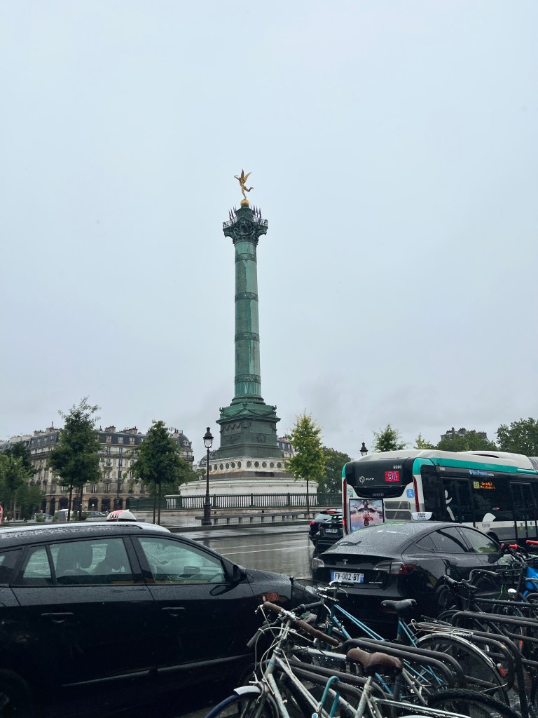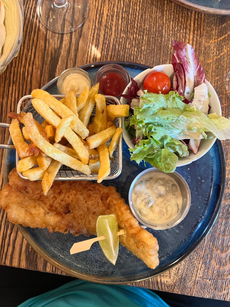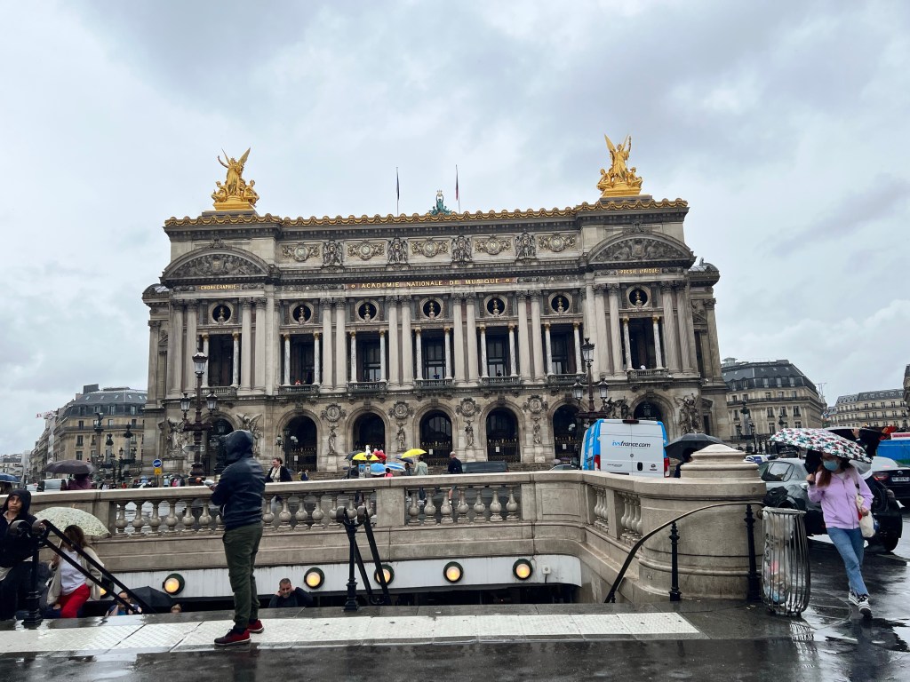 We decided to head over to Cafe Milou there was plenty of seating upstairs. It was the first time during this trip we had eaten up stairs. With the rain it was about 60 outside so this was the perfect time to eat upstairs. I had the Fish & chips. It wasn’t busy so we were able to sit around and chat for a bit. We were also hoping the rain would let up some. The weather app was saying rain was supposed to last until 4pm, so we knew we couldn’t sit around forever in our last day. The metro entrance was right across the street from the restaurant, so we headed back down to catch the train to the Opera.