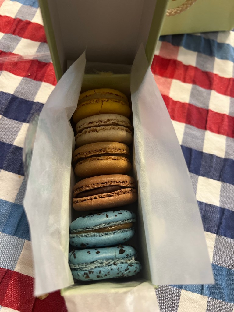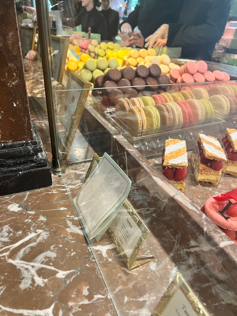 We found the macaroon place (Laudree) Alysen said she liked so we got into line there. There were tons of options for Macaroons and they had a lot of other things tarts, croissants and coffee. We picked out 6 to try and then headed over to a chocolate place. We also wanted to get some chocolates in Paris we could the mansion de chocolate. It was a little pricey, but we grabbed a mixed box to try and headed on. We headed again to the metro station.