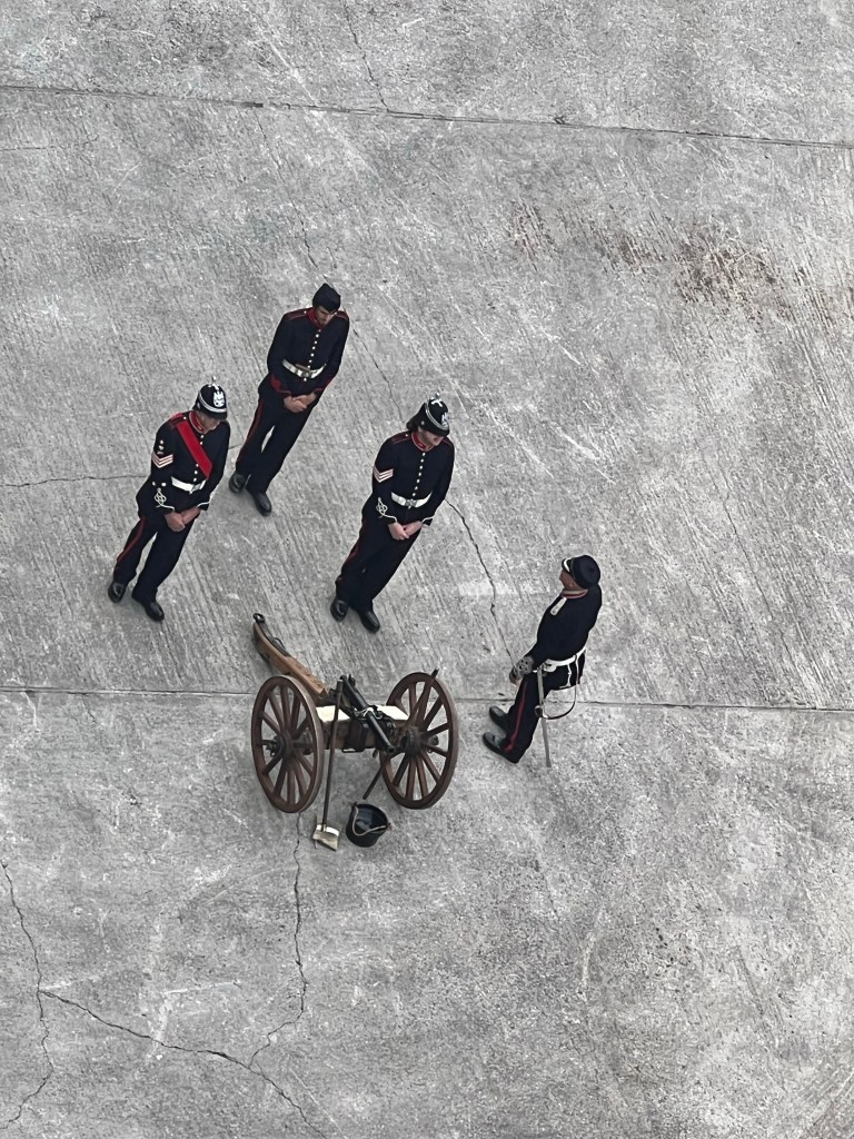 Mom and I needed to do some laundry so we came back to the room so we could get those things done and relax before we left port. The all about time was 3:15 today. The Captain came on about 3:15 and said cannons would be shot off soon. So we headed up stairs to see what was happening. On the port there was a group singing (we could hear them). Then we also saw the canons. The Mickey whistle sounded and the cannons prepare for their first shot. As we were pulling out the fired 2 more times. We are assuming maybe because this is the first time Disney has been in port there, but with everything going on with the Queen they could have been doing something to honor her. We did get a notice that Disney has been asked to participate in a Maritime Moment in Liverpool to honor the Queen.
