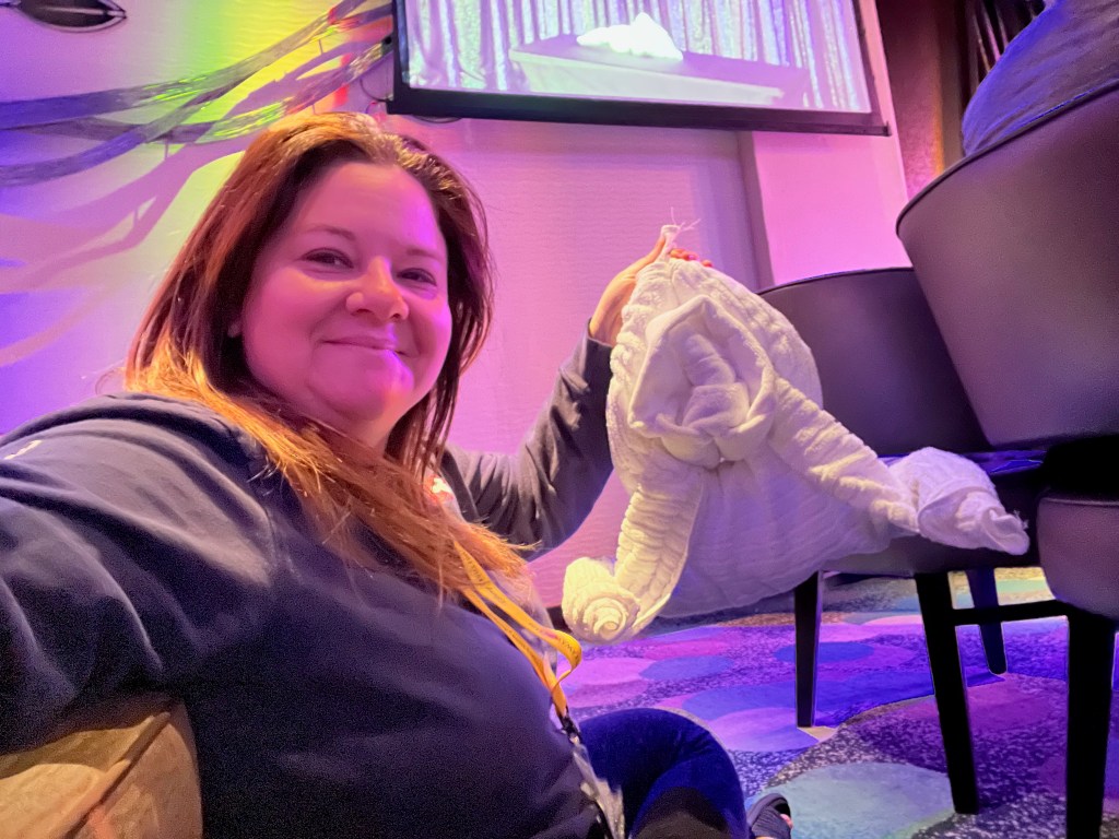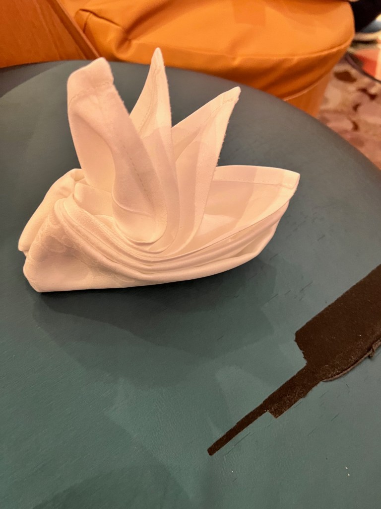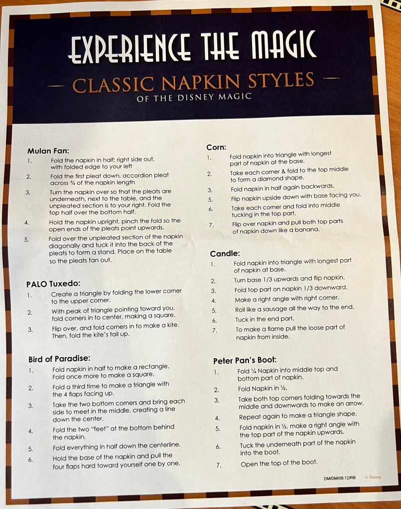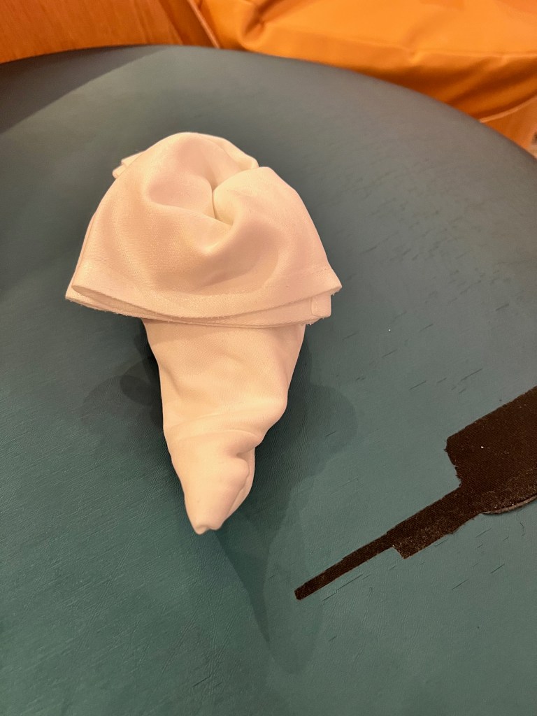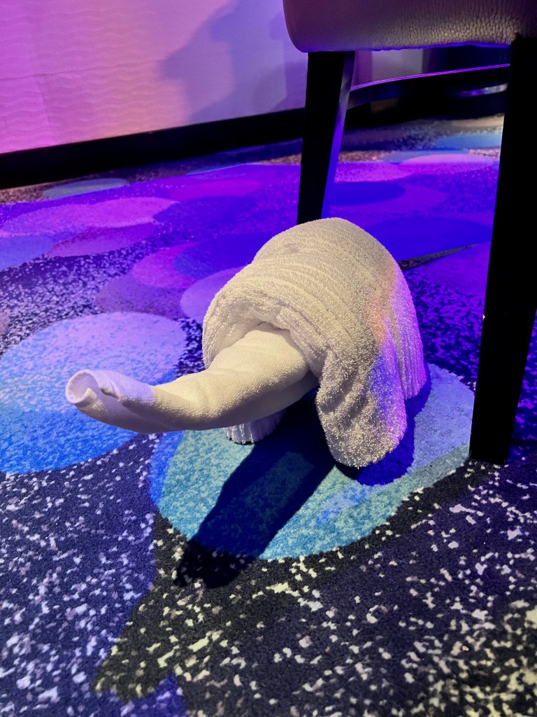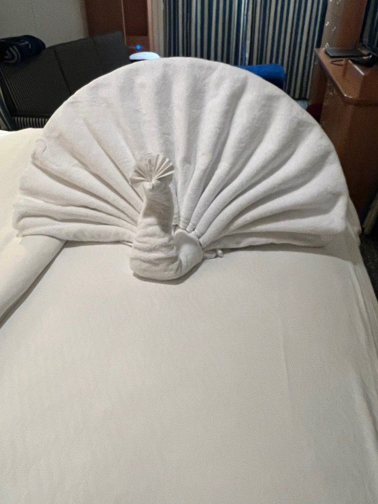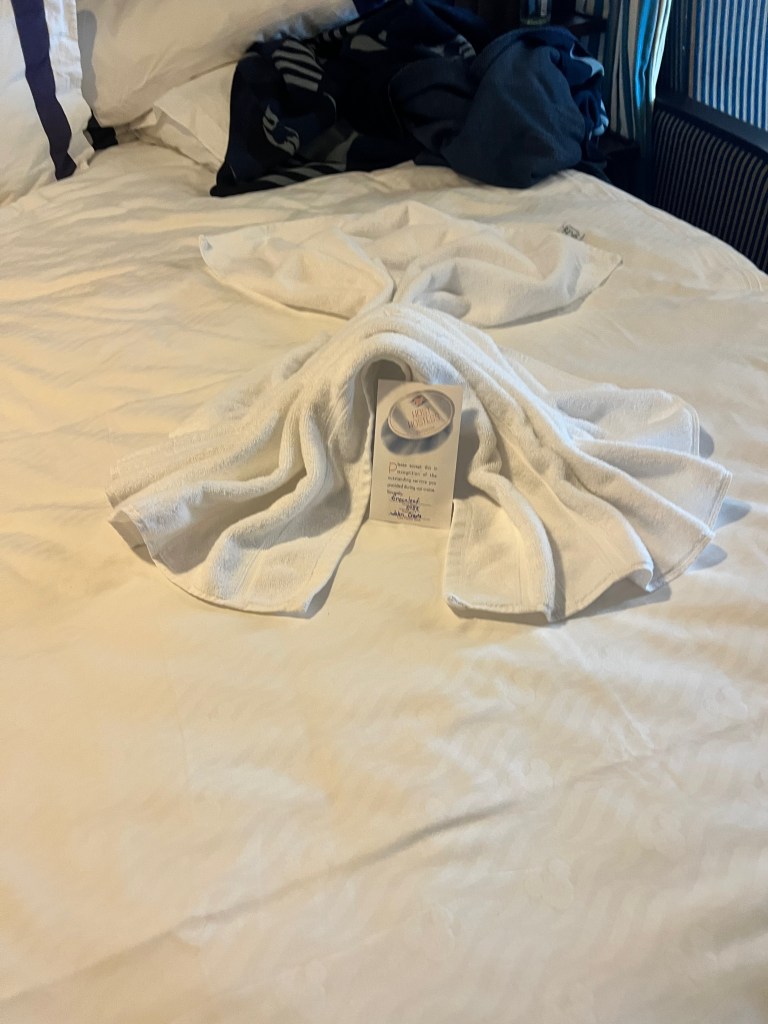 Today was a sea day. Which was a nice way to end the cruise. We had time to relax and get out things gathered and put away. Mom and I found napkin and towel folding that we wanted to do during the day.