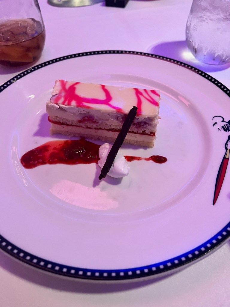 Dinner the last night was at Animator’s, so we did our drawings. Mom’s marker was running out, so when her person was up on the screen it looked like she didn’t have a head. It was pretty funny.