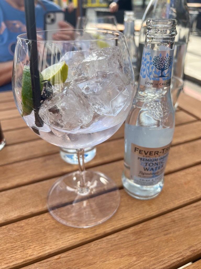 Very cute little place we sat on the right side of the building in the road. They are least have some barricades up so it doesn’t feel like you arena the street. Mermaid Pink Gin – Fever-Tree light tonic, strawberry, line and jumpier berries. It was missing the strawberries, but was still fun. I do not think I am a gin person. I have tried and we are going to Beefeaters Gin Distillery later.I went with the Moving Mountains Burger and the waiter came back and checked because evidently it was a plant based burger (the menu doesn’t say that), but I figured I would try it any way. It wasn’t took bad, way too much mayo. Mom ordered the Fish and Chips and we shared our food.