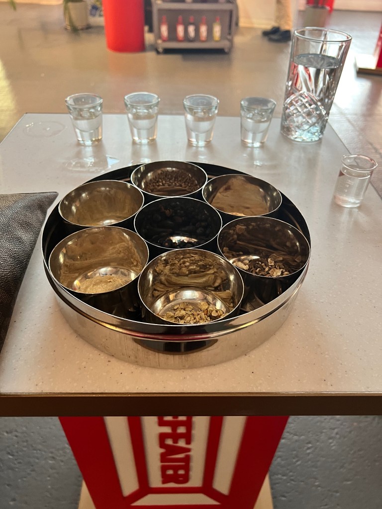 We were given a tray of some of the spices that are used to make gin. I liked this since when I taste the alcohol I can never pick out the different things in there. Here we could actually smell or taste what goes into the gin making process.