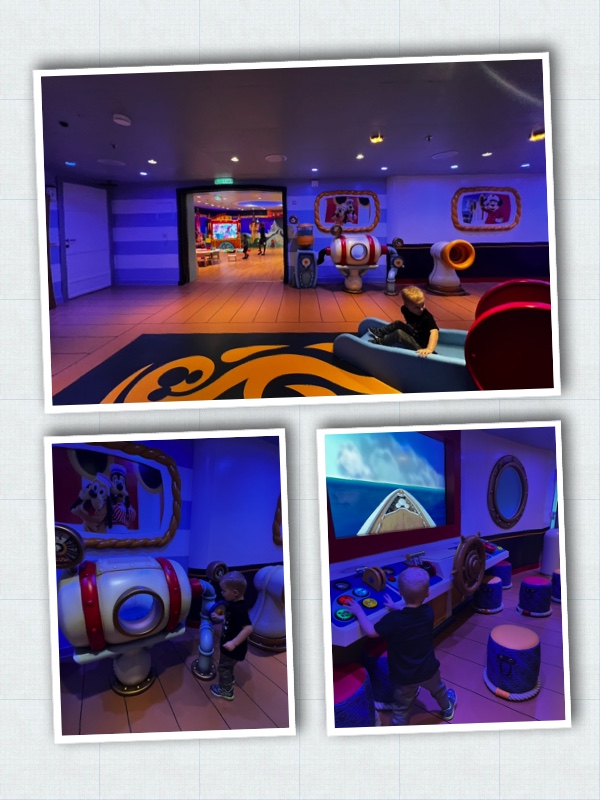 I think this play area was where I spent the most amount of time while on the ship. There were several times during the cruise this area was open and the boys liked playing in here. There were several interactive things and climbing things that G liked doing. Suzi and I hung out in the ship while we waited.