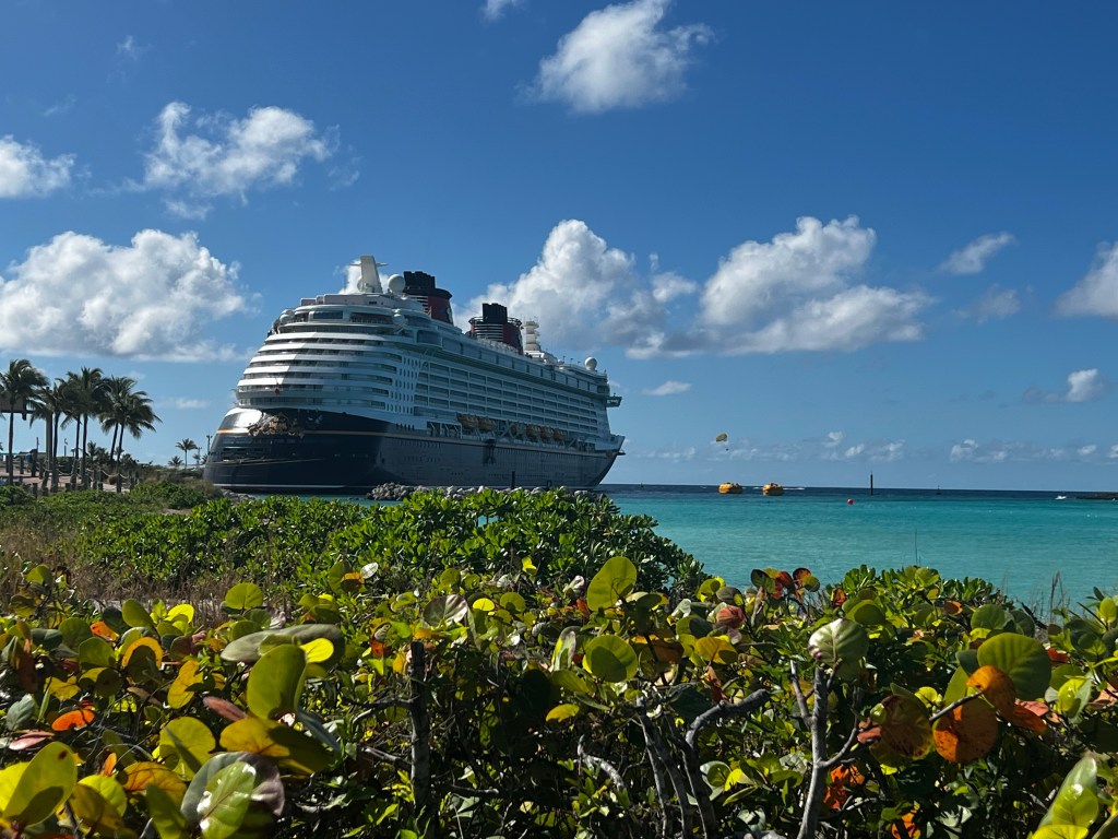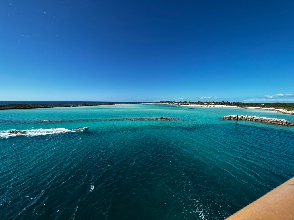 I went in the pool but it was a little chilly, so I switched to the hot tub. The adults area was not crowded today which was amazing. It has been packed over this cruise. We decided to get dressed and head down to deck 4 to walk some and relax on the loungers down there. We saw tons of boats going out with people Parasailing today.