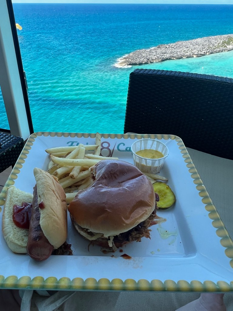 Woke up around 7am again. Evidently that is the magical wake up time this cruise. We headed up to Cabanas for a quick bite before getting off in Castaway. There are new 5k medals, so we decided to go ahead and complete that. It is in the 80s today, so a little warmer than in December. After finishing up the 5k we headed back to the ship and head to the pool.
