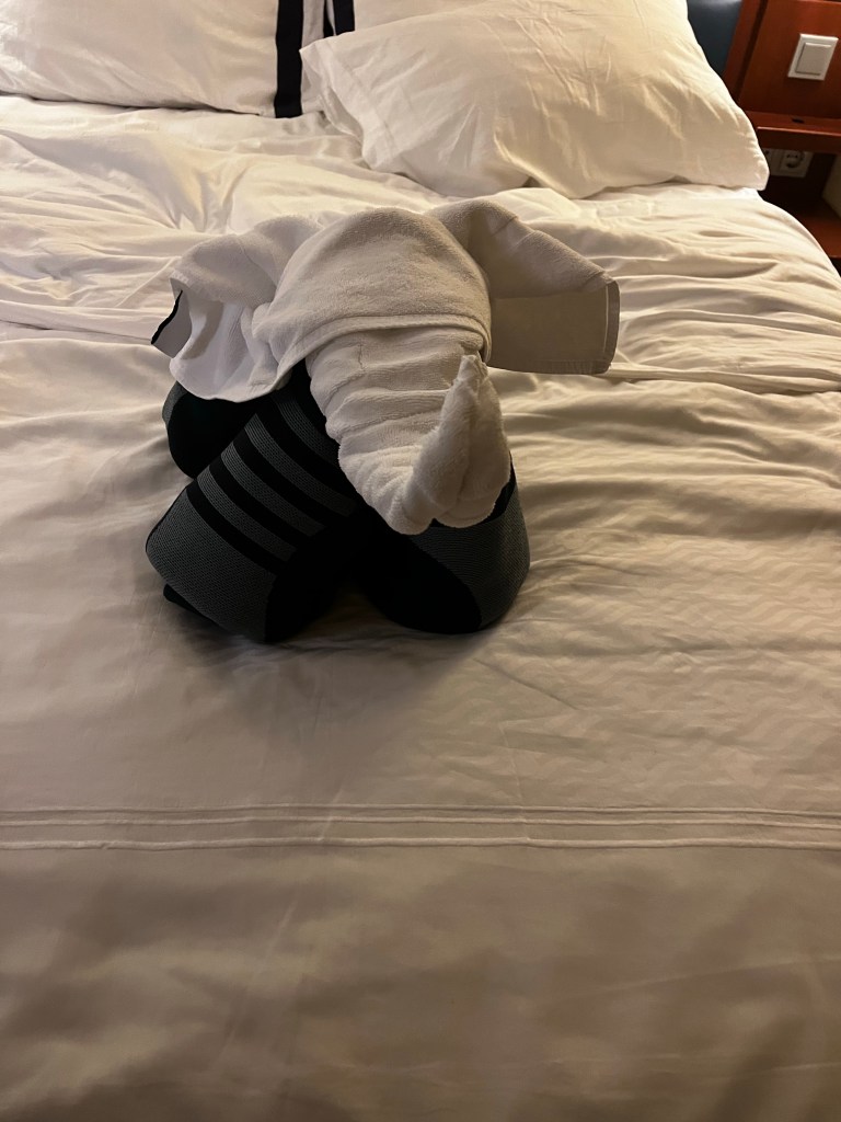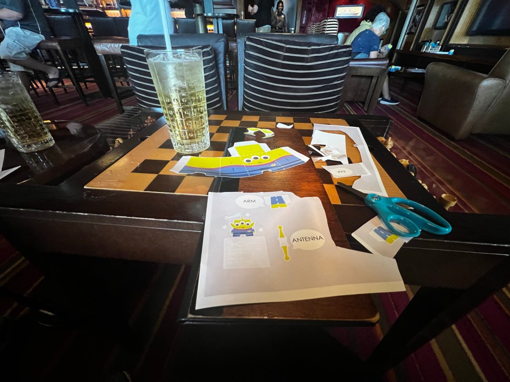 We decided we should have a change in location and went down to deck 4 to walk around and relax in the loungers. Pub 687 had an adults craft so we headed over there to check that out. It was making one of the little Aliens. We decided get needed a Jameson and ginger ale while we made out craft. After the feast was done we still hadn’t finished our drinks so we decided to stay and watch the making of the Dream.