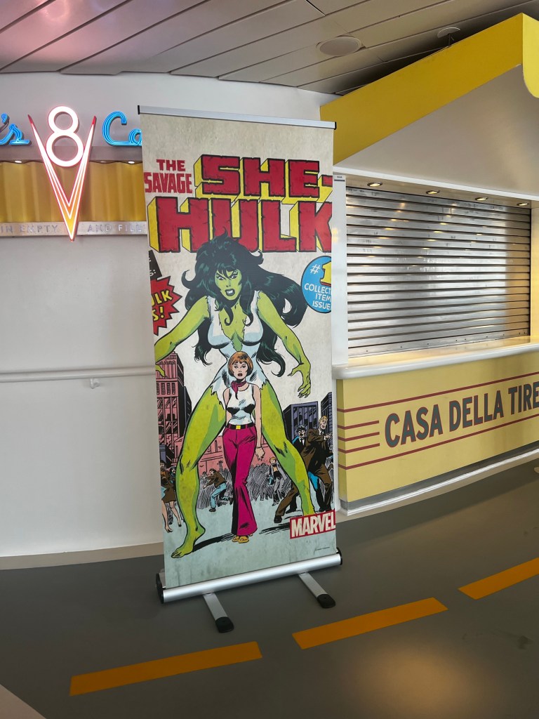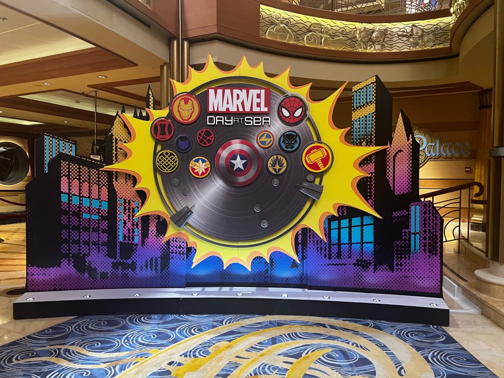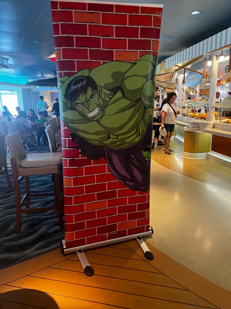 Then we headed down to cabanas for breakfast. Since it is Marvel Day at sea that had several banners up around the ship.