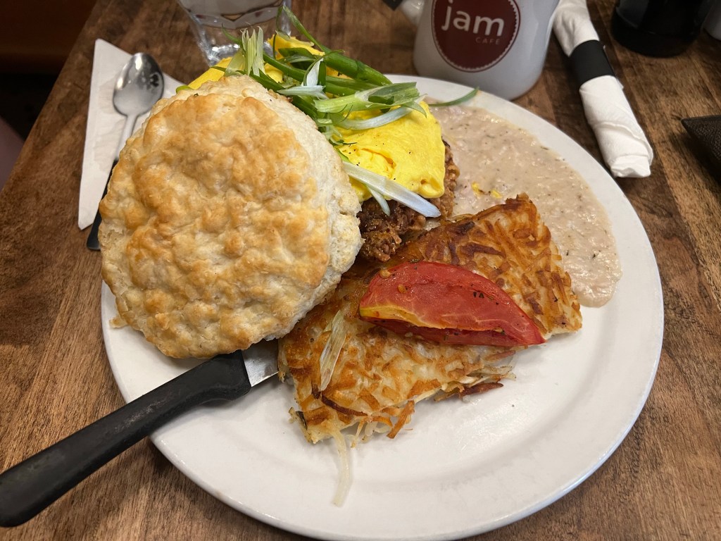 We headed out about 7:45 to go to Jam Cafe. We go there at 8am and just missed the first group of people get get seated for breakfast. We waited about 30 minutes for a table inside. They opened up some outdoor seats but I’m in shorts and a short sleeve t-shirt and it is 50 outside. We decided to wait and eat inside.
