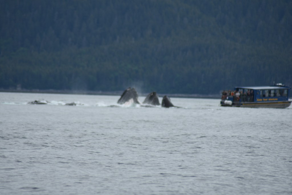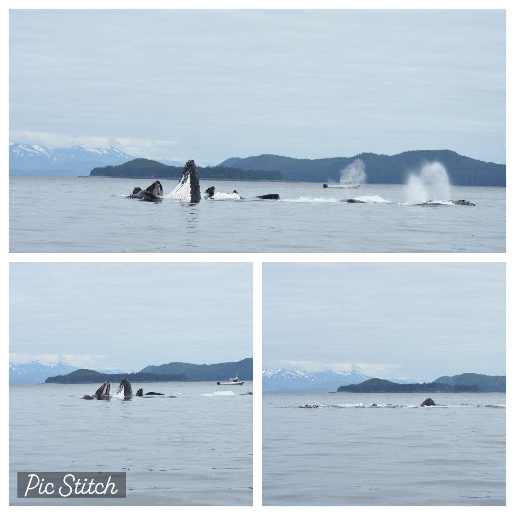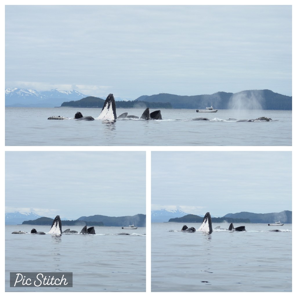 Right in front of the light house were a pod of humpback whales. As we were sitting there some Dahl porpoise showed up. They were super fast and you couldn’t tell where they were going. The captain said the moving whale were bubble feeding so we were going to move locations. The first time they popped up it was amazing. Bubble jet feeding was on my list of things to see and it was amazing. The boat we were on had windows that opened so everyone had a great view of the whales. Bubble Net Feeding was on my wish list of something to see and it did not disappoint. There were so many whales working together it was amazing! I took about 400 picture while we were out. I’m still trying to go through everything!