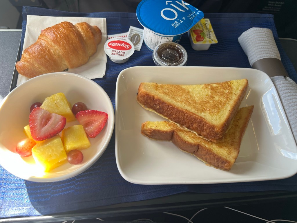 Once the stationed opened we were able to head down and get tickets to the airport and head to the track. The first train didn’t leave until 4:48 so we were early but not the only people there. I was supposed how many people were getting on the train before 5pm. Not my time preference. We easily made it to the airport station and then made the trek over to the United check in. We used the kiosks to print our baggage tags but most people didn’t so the line was moving super slow. There was a long United line evidently from a cancelled morning flight. Lots of people getting up set about waiting to be rebooked.