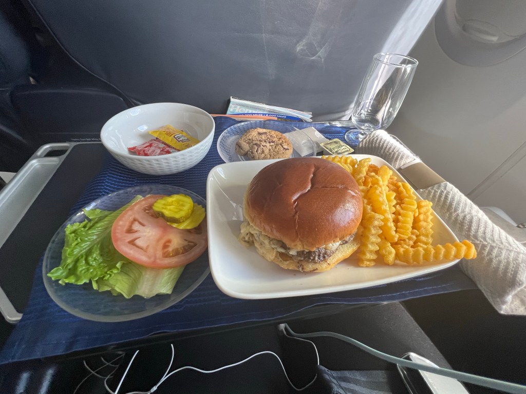 On the 2nd flight we were served dinner. the flight wasn’t too bad. When we arrived in Orlando it took about 20 minutes to get out bags before we could head to get our car.