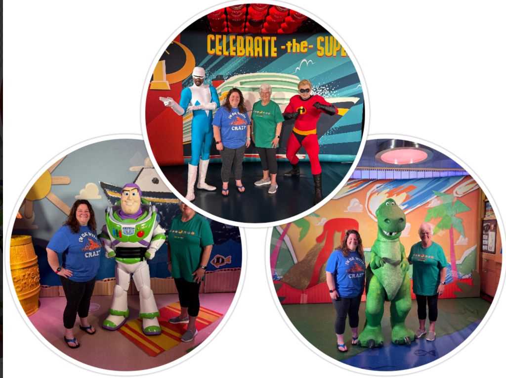 Then time for some meet the characters. We saw Rex, Buzz, Mr. incredible and Frozone. The green soldiers from Toy Story were walking around and would pop up places. It was very windy and rocky on the ship today. We did some people watching as there were a lot of characters out and about.