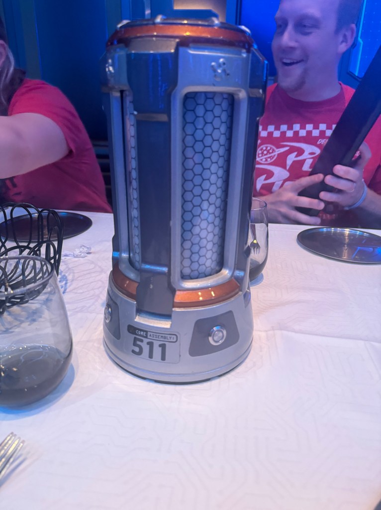 Dinner was down in Worlds of Marvel. Gentry remember parts of the show at dinner from last time and was super excited about being able to hit the buttons on the Quantum Core. After the show that played on the screens Spider-Man came around and took pictures with the kids. Gentry was super excited about that.