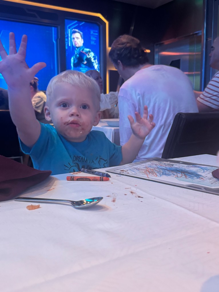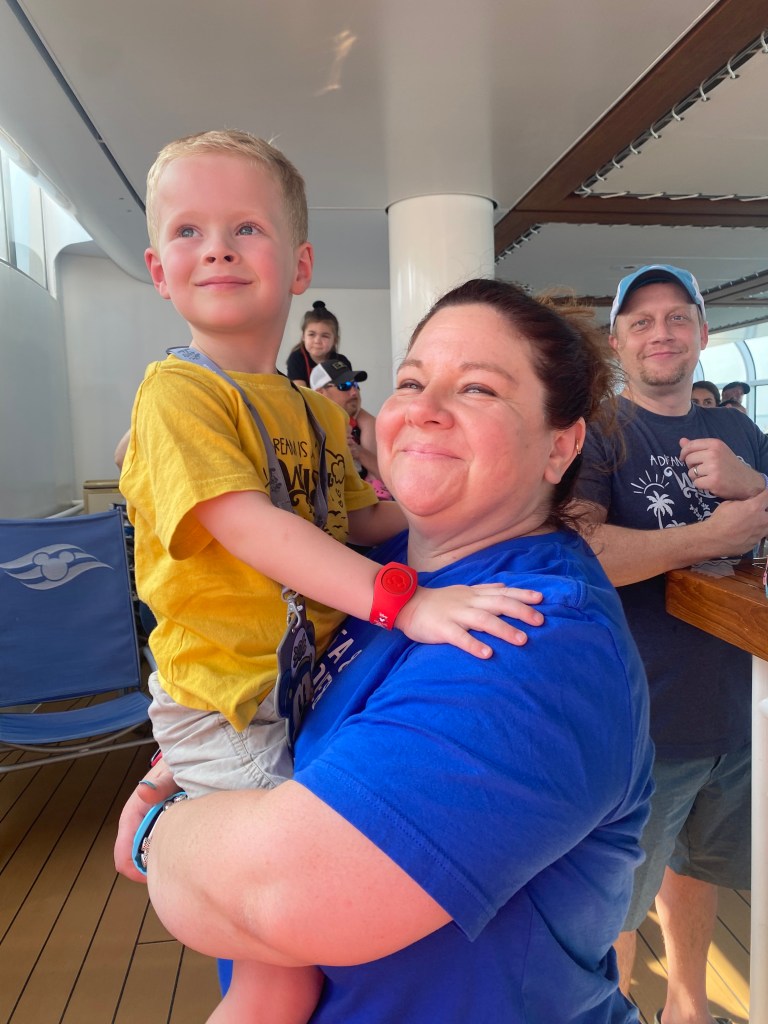 Cruise day arrived at port around 11:30 dropped off our bags and headed into the port. We checked in and upstairs with sometime to look around at the ship display. They were boarding groups 1-4 when we arrived and we were group 9. We didn’t have to wait long before it was our turn to get on board. Gentry was so exited he kept asking if we were on the ship and as soon as we actually saw the ship he was excited.