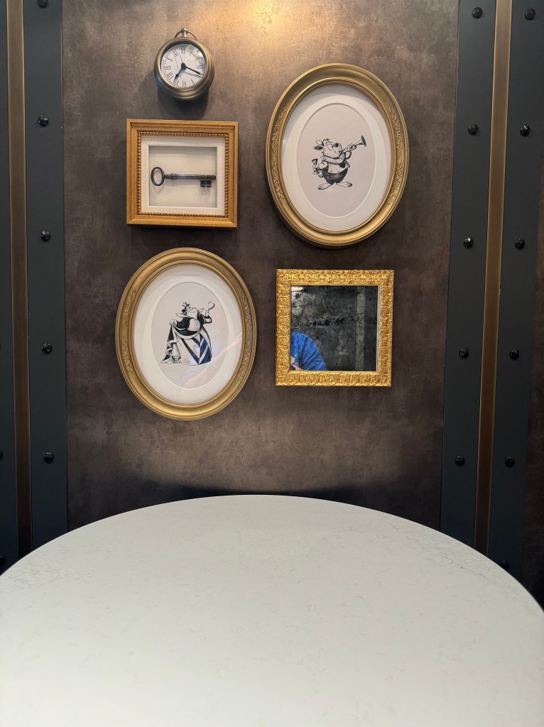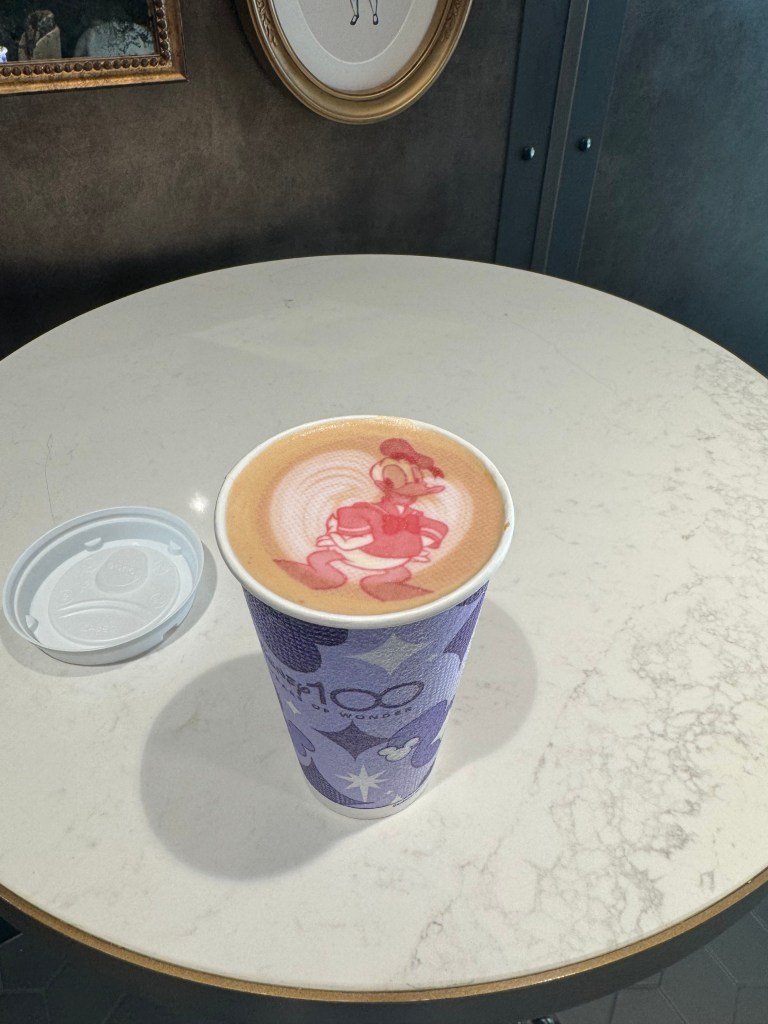 Breakfast was being served in Marceline Market. Luckily they also have a specialty coffee area, so I grabbed some coffee and went to sit with the Martin family while the boys ate. The coffee area had an Alice in Wonderland decor. The tea tins on the top had different fun titles like Mad Hatter Tea.