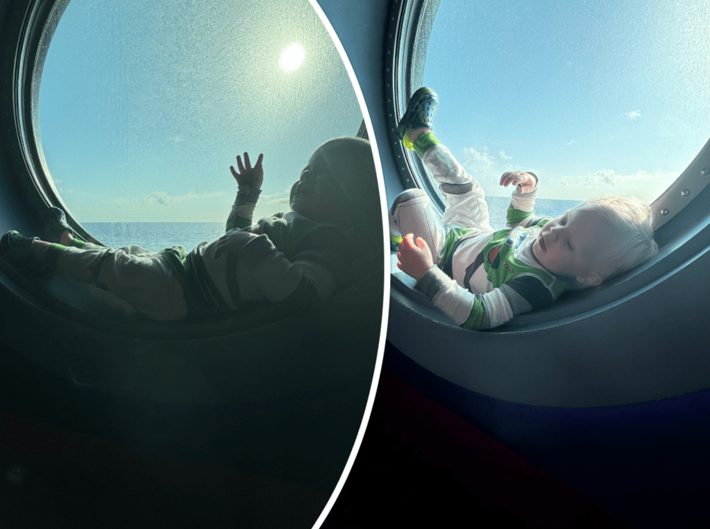 He loved that you could lay and sit in the windows around the ship.