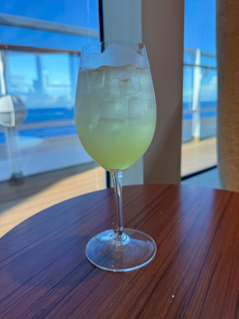Boarding started about 11:30 and we went right to Lumiere’s for lunch. I had the salmon salad and we meet with the concierge host. We realized that I wasn’t booked for the mixology class. So Kenan one of the hosts was able to fix that for us.