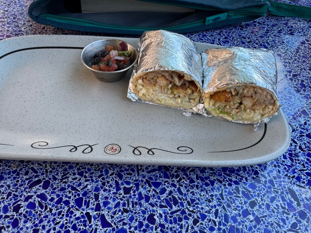 For lunch we decided to stop at Donald’s Cantina. Since most people were off the ship we didn’t have to wait as long as on the Sea Days. They have options for burritos, tacos or just a bowl. The burrito was really yummy. I out chicken, cilantro rice, cheese, guacamole, sour Crean, and pico.
