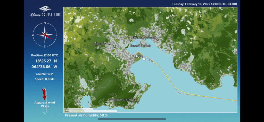 Having the map feature on my phone is really nice. Another nice view from the ship, we stopped outside to get another picture of a view of the island. The weather was upper 70s and sunny, so being in the shade was perfect.