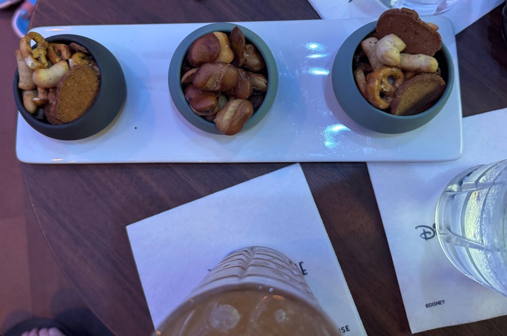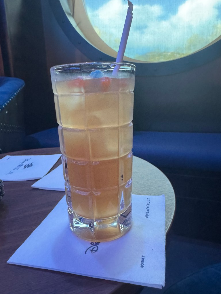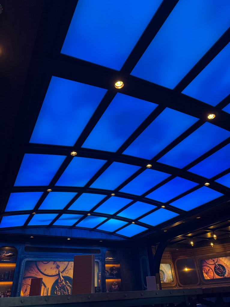 After a quick shower in the room. We decided to go down to Periscope Pub to check that out and get a drink. We arrived at 3pm when the first opened, so we easily got a seat. They had trivia in there around 4pm and it got pretty crowded while trivia was going on. After we were done with our drinks we went back to the main area to see what pirate characters were out. The ceiling in the pub has sharks and fish swimming above. From what we heard Disney took footage from Epcot’s SeaBase Aquarium to create to look footage that plays on the ceiling.