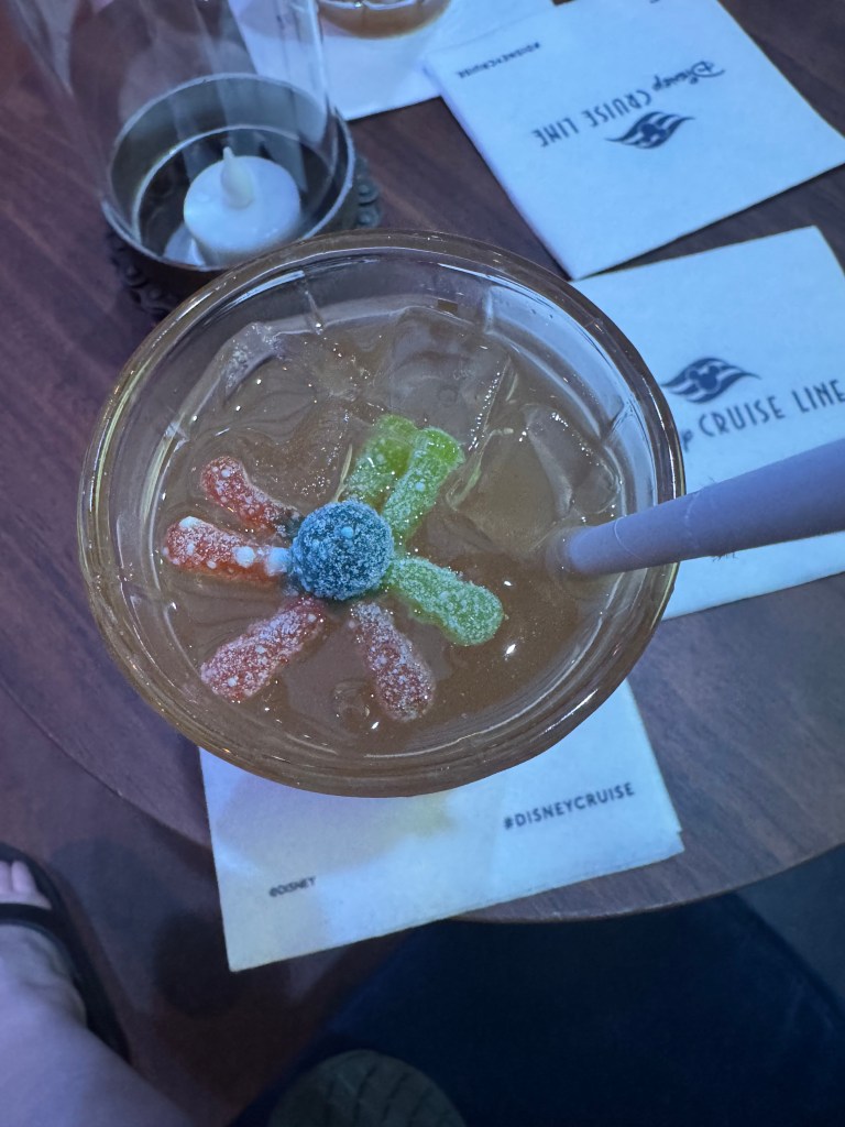 Since it is pirate night and we have to stay awake. We decided to go watch Mufassa in the theater. The Treasure (and wish) have 2 theaters instead of 1 like the other ships. When we walked in there were maybe 7 rows. It was very small. The seats were larger and more leg room which was nice.