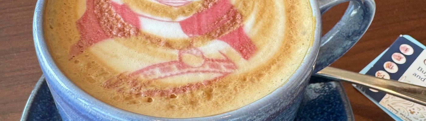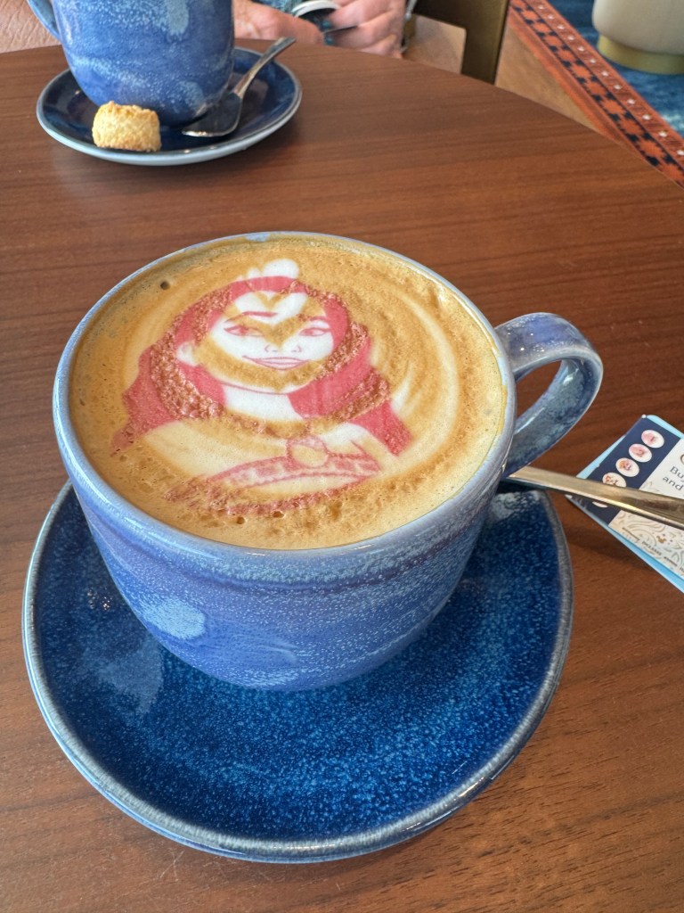 We decided to head up to the adults area since most people were off of the ship. When we got upstairs we found out that the adults pool was closed today because of cleaning. The drained the pool. We were sad because that is where we wanted to hand out, but decided to grab a seat and just read. We got cold quickly and decided to go into Cove Cafe and get a coffee. Mom ordered a White Chocolate Mocha, but ended up with a hot chocolate. I thought it was funny, mom was sad she didn’t get her caffeine. It did fill up our coffee card with a cheaper drink, so she was able to go back and get the coffee she wanted for free.