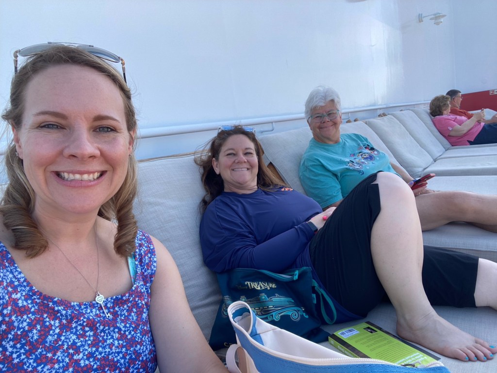 Now that the drill is over time to unpack and start enjoying the ship! We found some loungers to relax in and watch the ship sail out of the port.