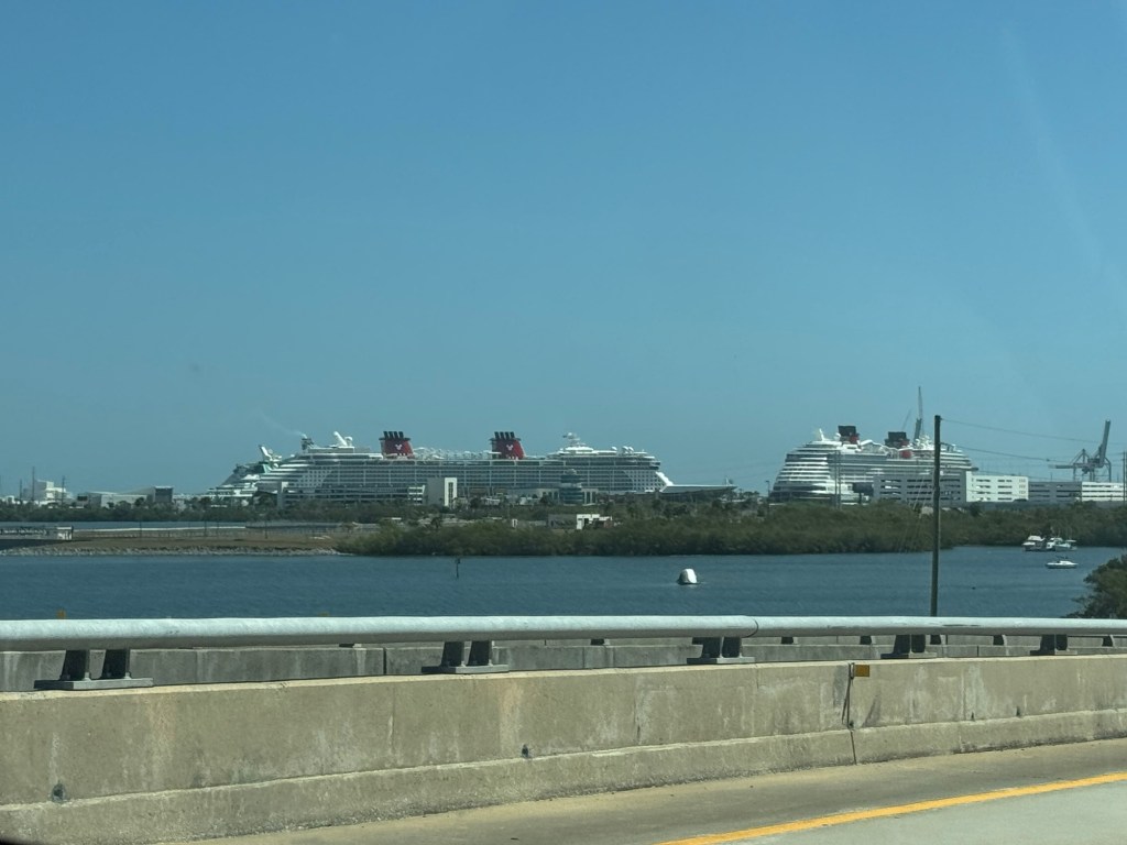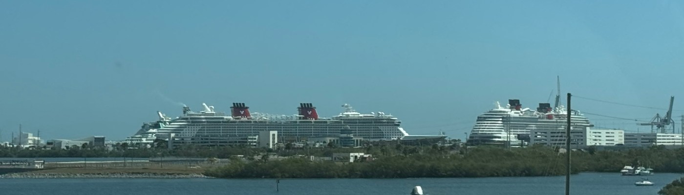 Just a short 3 night cruise on the Disney Wish this time. We decided to try no kids and see all the adults area. Suzi’s goal is to finish a book this weekend! Getting the port was an adventure. There was an accident on 528 heading away from the port that slowed traffic both ways. We made it about 15 minutes after our scheduled Port Arrival Time.