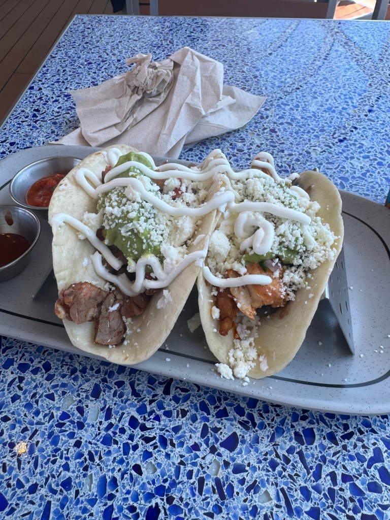 First stop was at Triton’s to get Suzi added to our brunch reservation at Palo it was really quick and easy. Then we headed up to the pool deck to grab some lunch. I went to Donald’s Cantina to get some tacos.