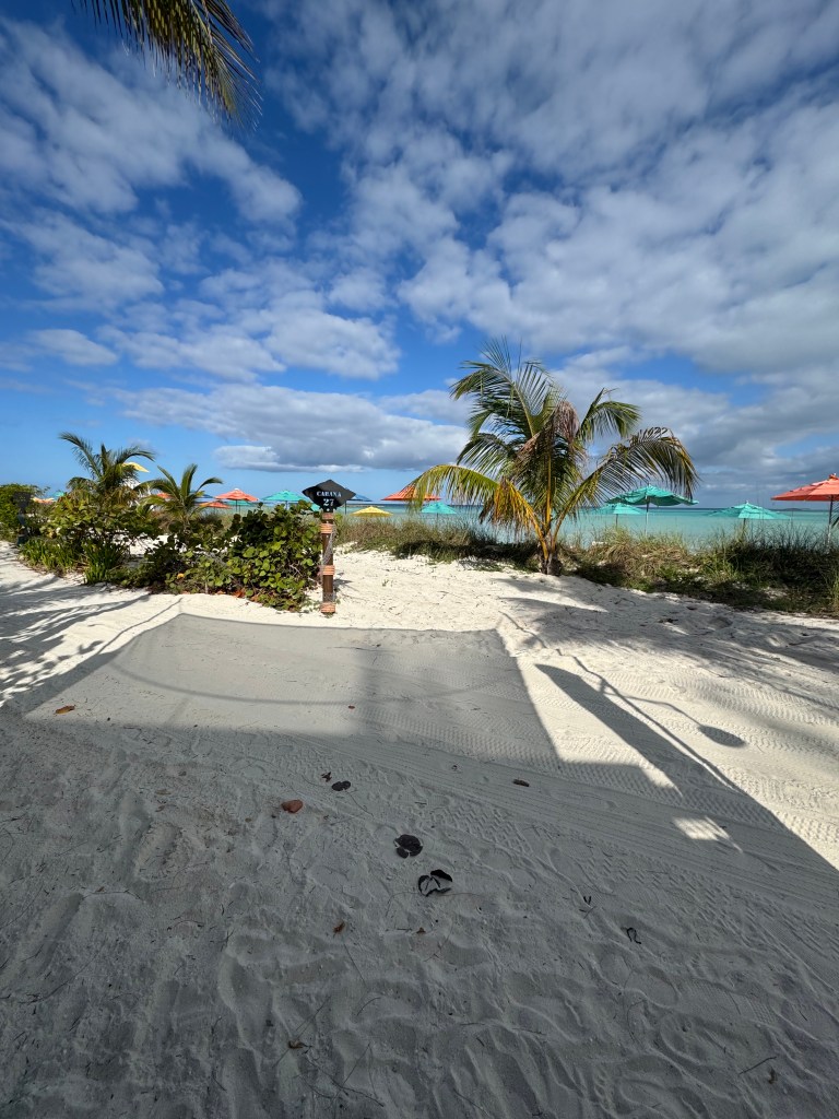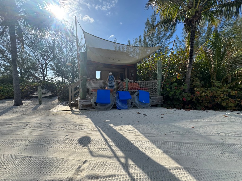 Arrival this morning at Castaway way 7:30am. We had a Cabana, so we wanted to get off the ships and enjoy our time. We decided to skip going to the Buffett or sit down breakfast and headed back to Cove Cafe. I enjoyed going up there and getting coffee and croissant. They were really good. We enjoyed our food and then decided enough people should be off the ship and it was time to head to our Cabana.