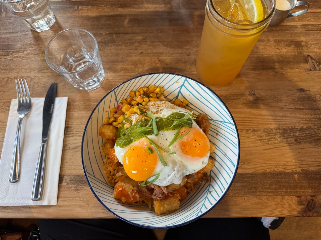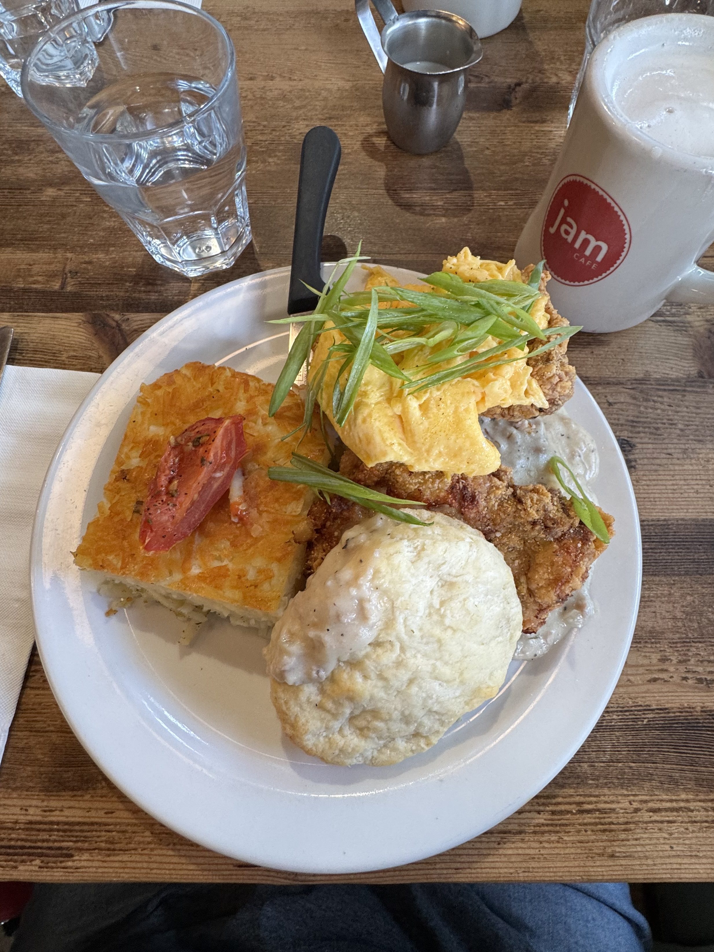 I had the London Fog and the Gravy Coop – a buttermilk biscuit served with fried chicken, topped with scrambled eggs, gravy and a side of hash browns. When I finished eating it looked like I hadn’t eaten anything the portions are so large, but it was so good.
