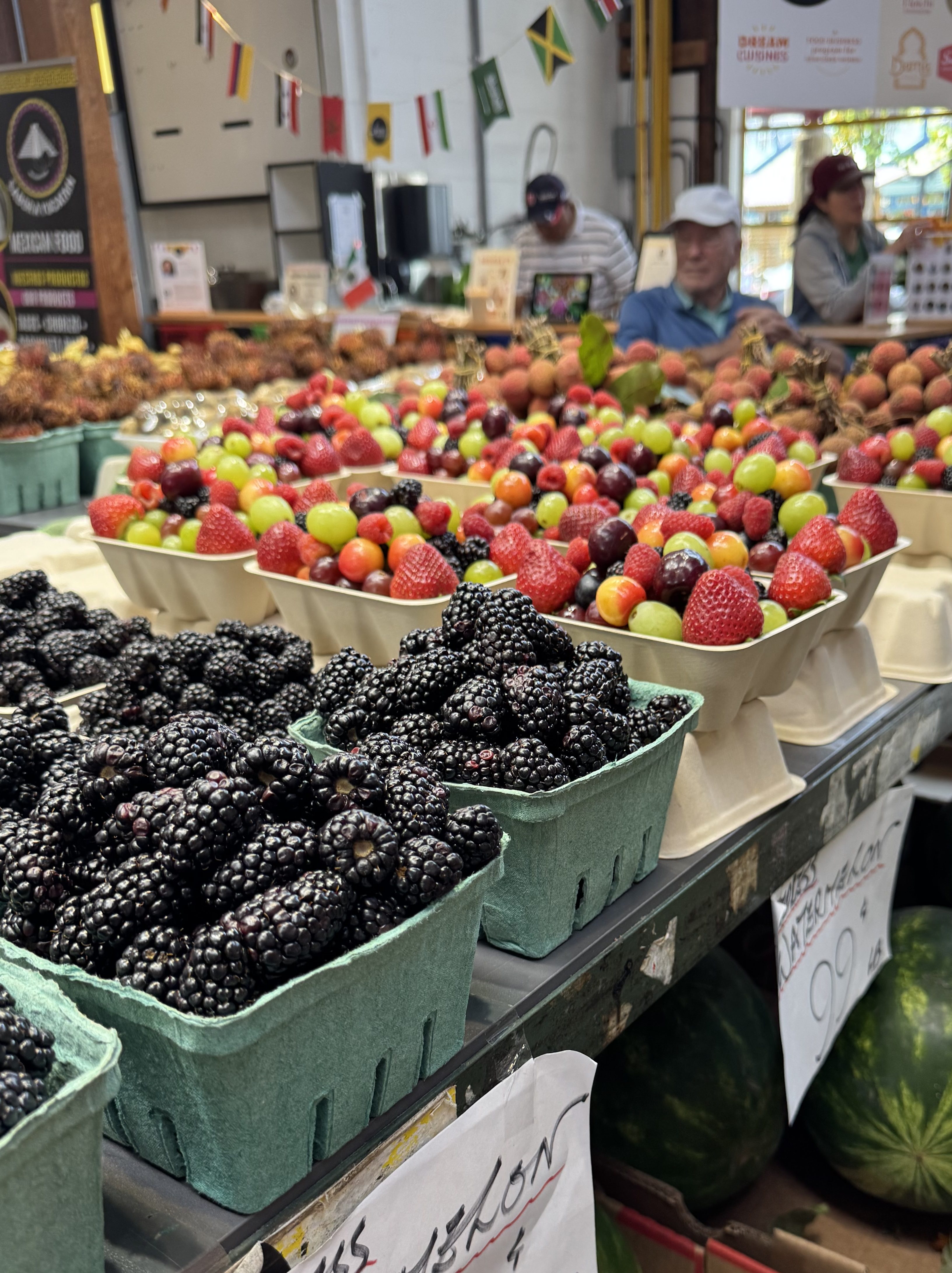 Then it was time to explore the Public Market at Granville Island. We picked up some fruit, sandwiches and donuts for tomorrow. Then spent some more time looking at all the yummy food and different shops that were there. Lots of fruit and vegetable stands, tons of take and make pasta dishes. Lots of yummy looking desserts those lines were long, so we did not get any.