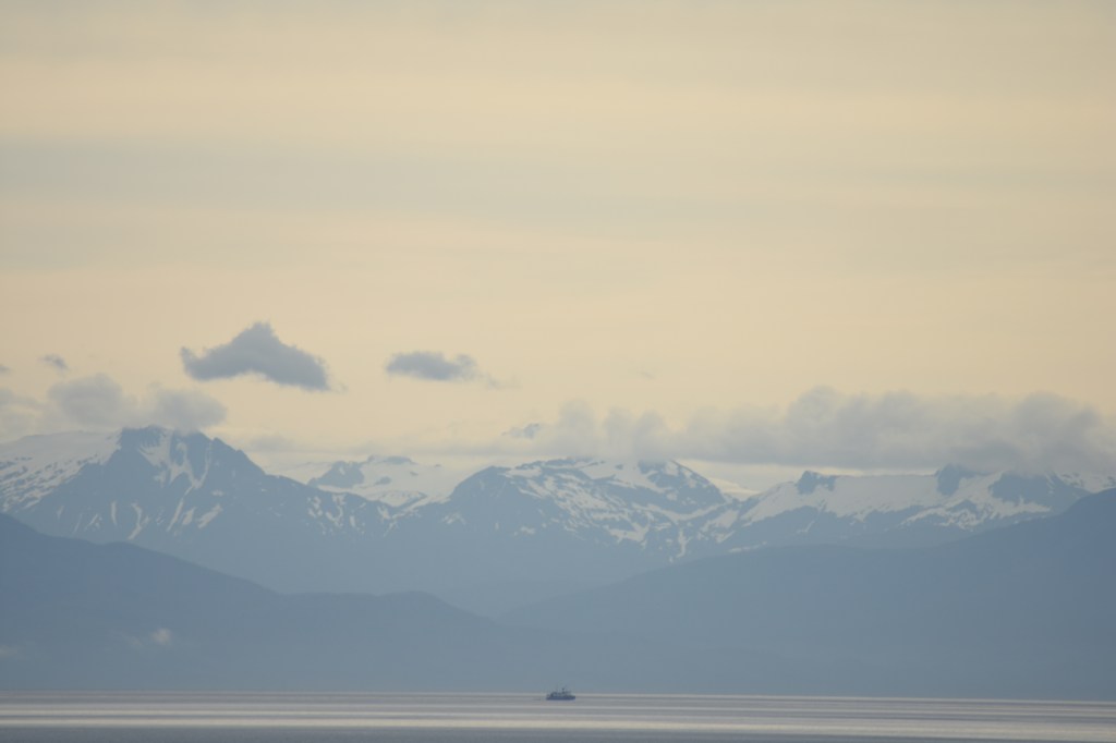 We stayed on Deck 10 for a while looking at whales and then decided to head down to deck 4. So far lots of pretty mountains and tons of whales. Always a good sign for glacier day. Hopefully we will see a lot more during the day.