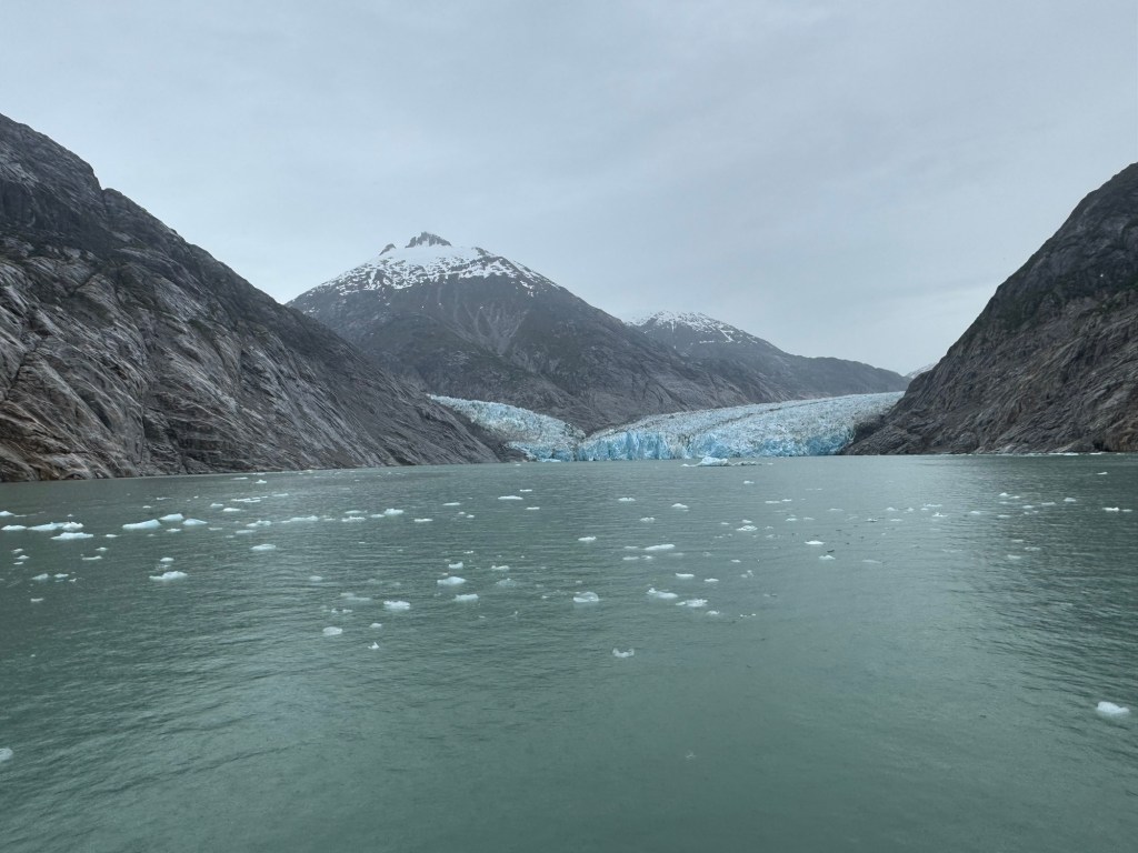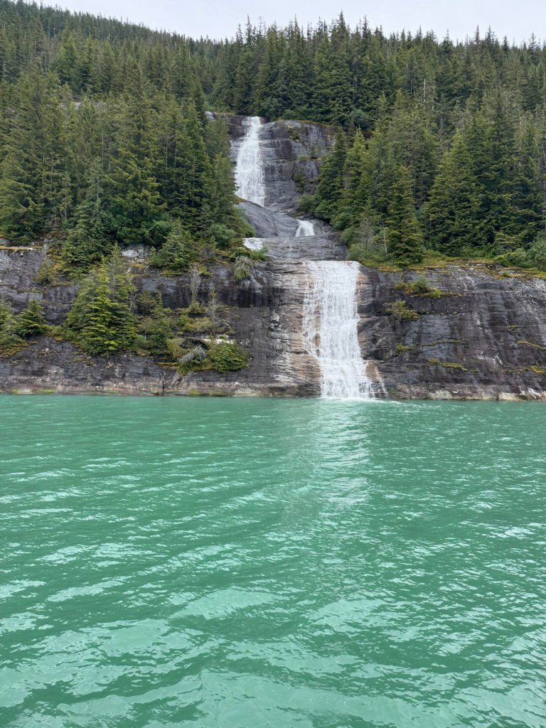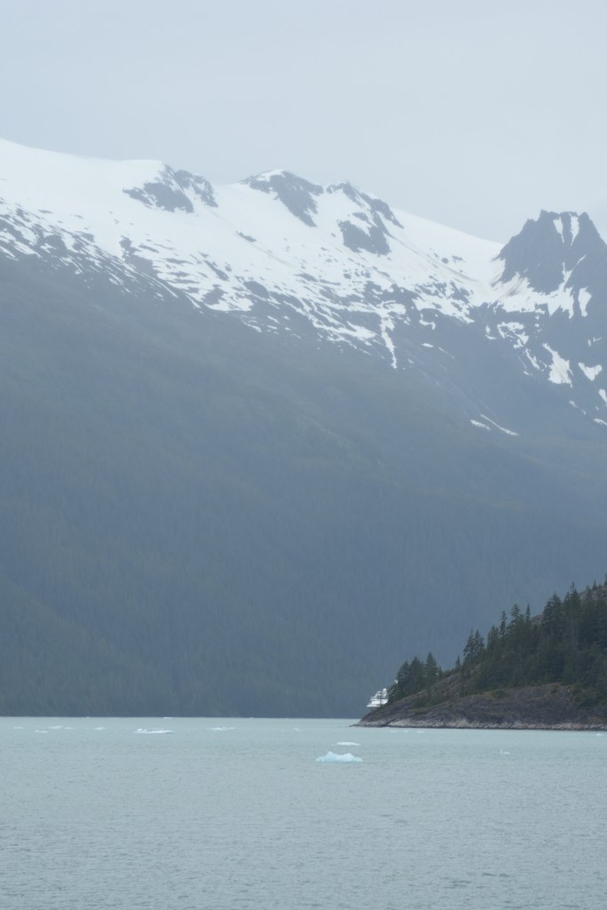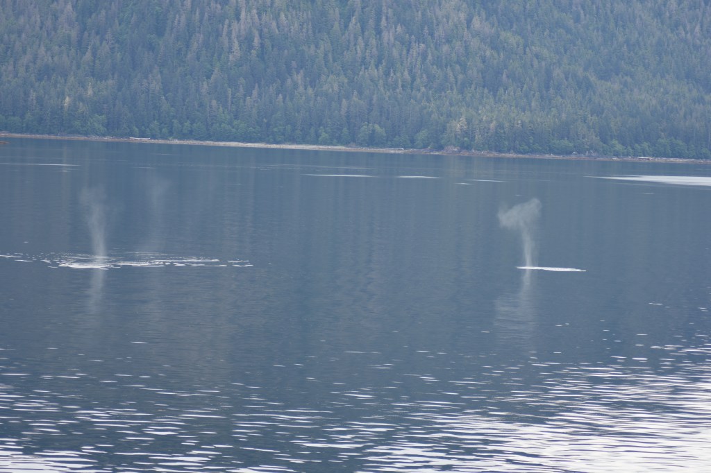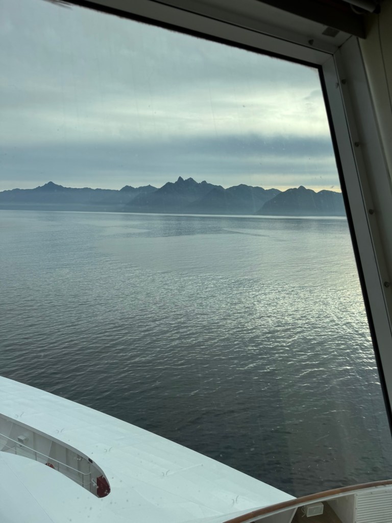 I’m excited for glacier day and looking forward to seeing lots of wildlife. It is cold today for sure. The TV said it will be a high of 54 today. A little overcast and cold to start the morning. After breakfast we went to deck 10 but decided that we should go back to the room for more layers. We started seeing lots of whales today which was exciting. Time to relax and watch the water for signs of whales.