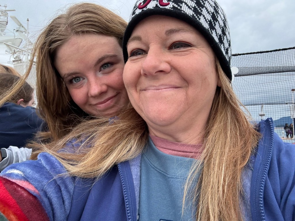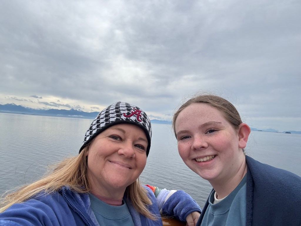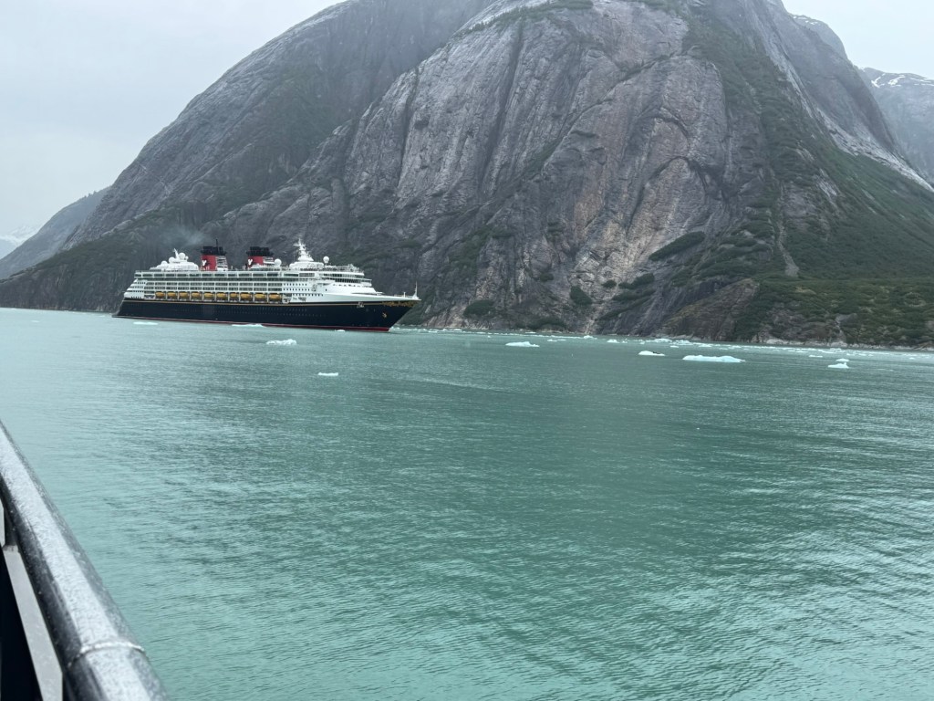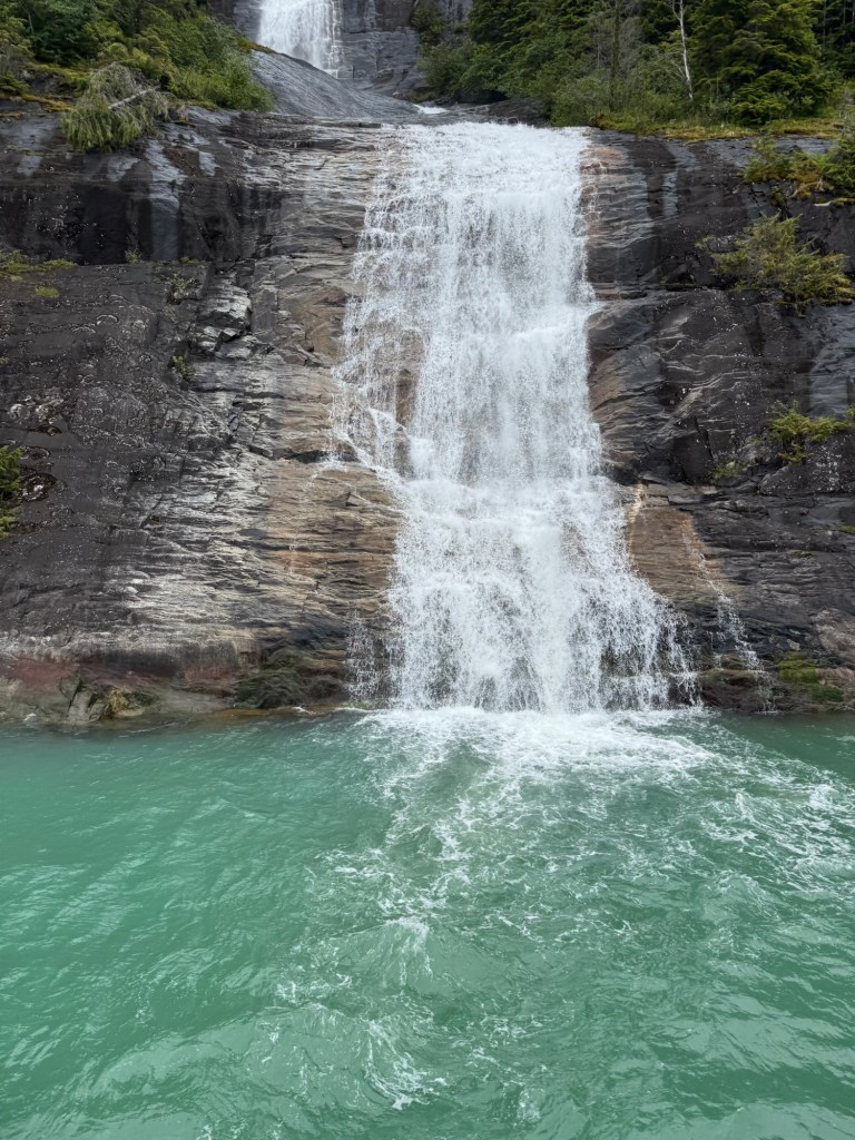 I’m excited for glacier day and looking forward to seeing lots of wildlife. It is cold today for sure. The TV said it will be a high of 54 today. A little overcast and cold to start the morning. After breakfast we went to deck 10 but decided that we should go back to the room for more layers. We started seeing lots of whales today which was exciting. Time to relax and watch the water for signs of whales.