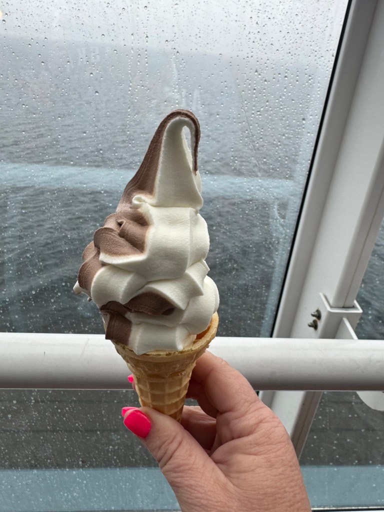 The dessert on this menu is not my favorite. So Jennah and I braved the rain and went to deck 9 for some ice cream.